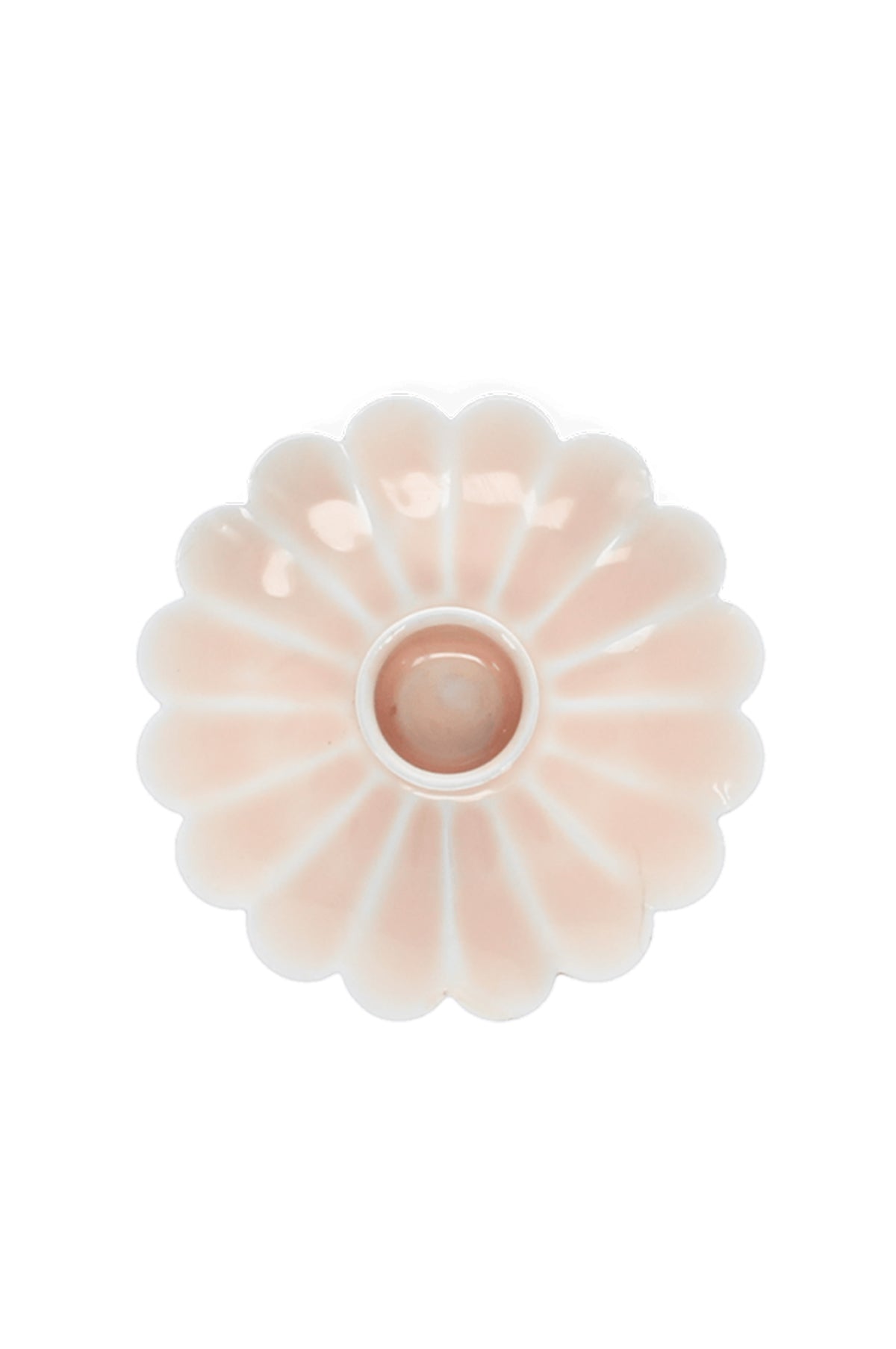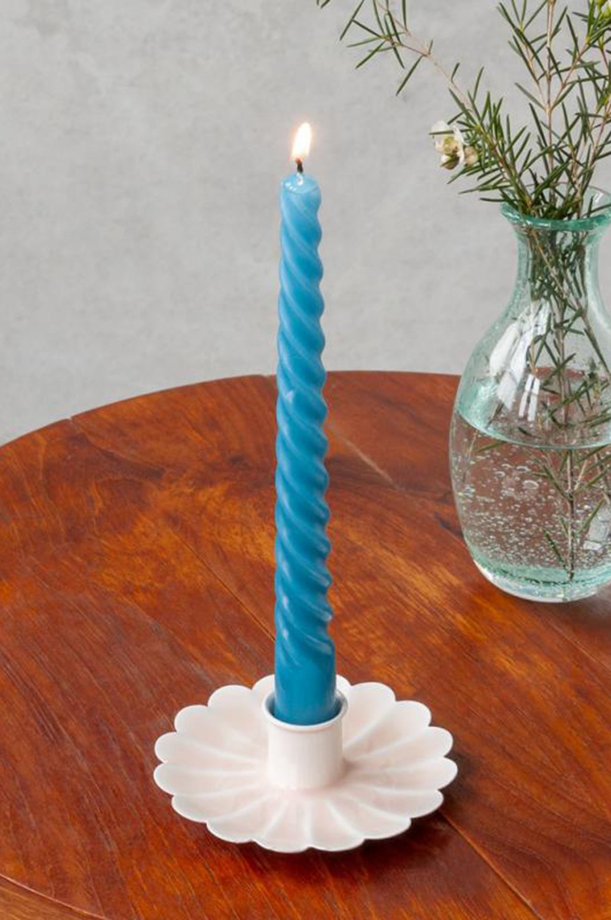 This unique enamel flower low candle holder adds a splash of colour to any dining table or mantlepiece. The flat flower-shaped base is designed to catch dripping wax, perfect for keeping your furniture wax-free.