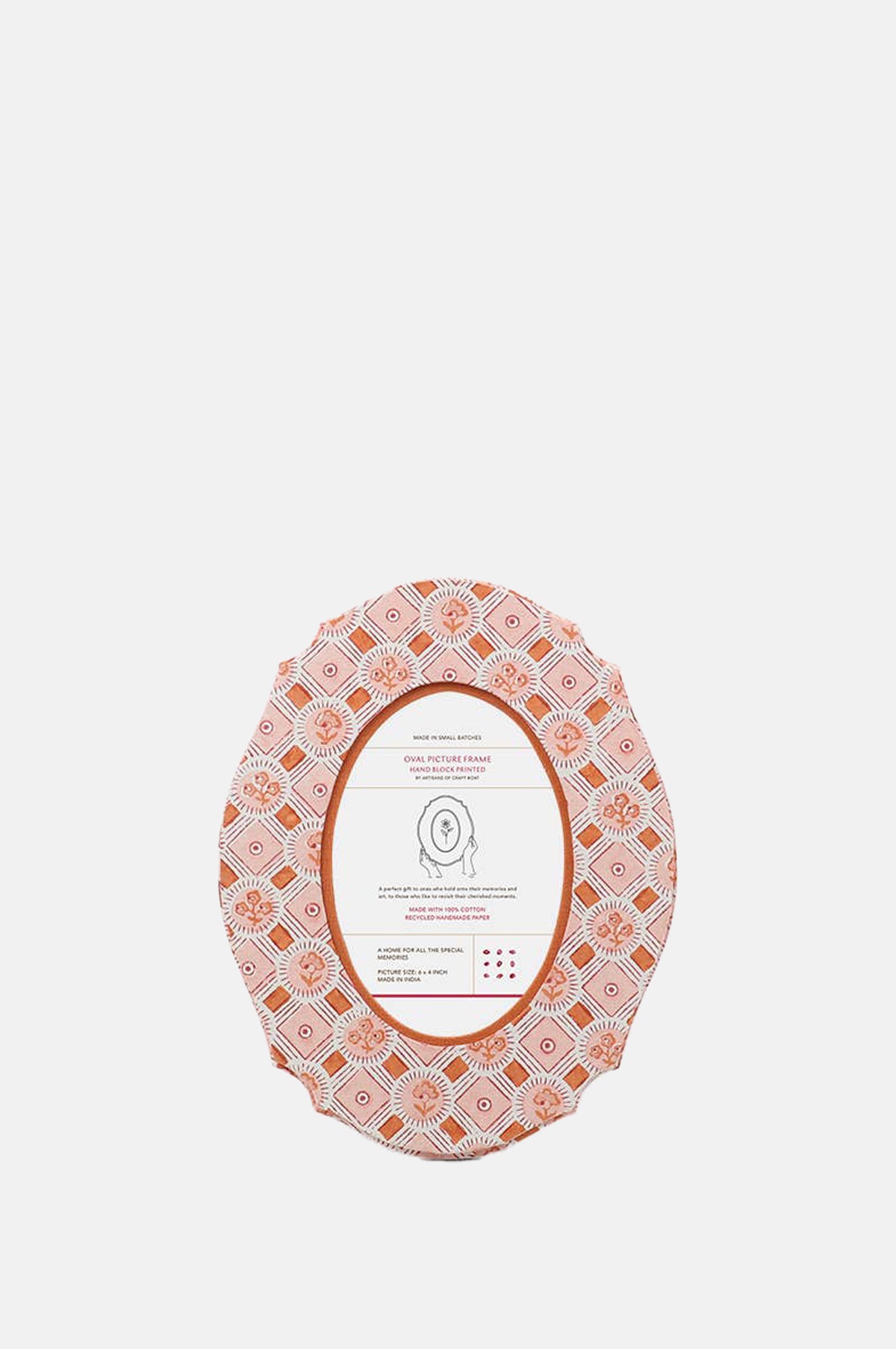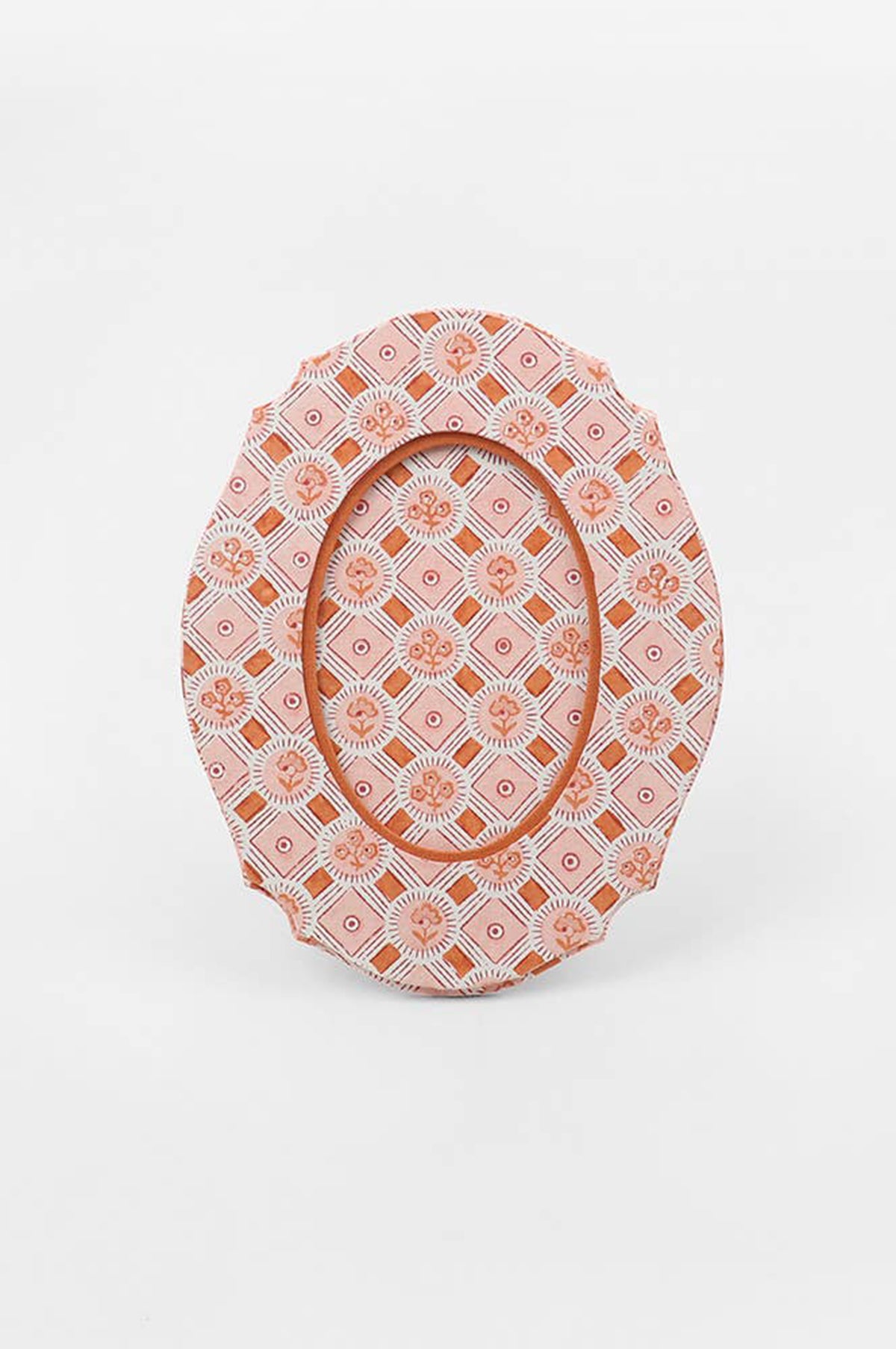 Craft Boat recycled cotton standing picture frames are handmade by master artisans who have been creating vintage style boxes and cartonage products for generations in Jaipur. This beautiful paper design featuring a checkerboard pattern of orange and pink spring blooms has been hand block printed. This would make a perfect gift for those who hold onto and display their memories and art, to let them revisit their cherished moments.