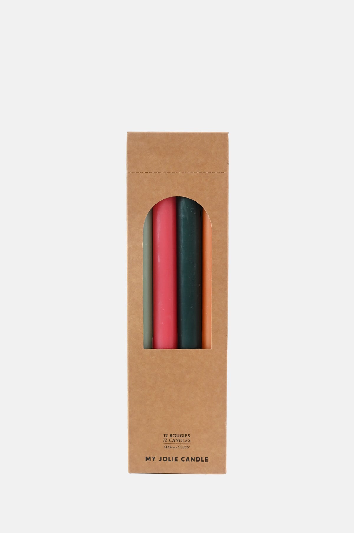 These joyfully coloured long dinner candles look fabulous on display. When they are lit the colour even improves in intensity thanks to the way the wax is colour tinted.