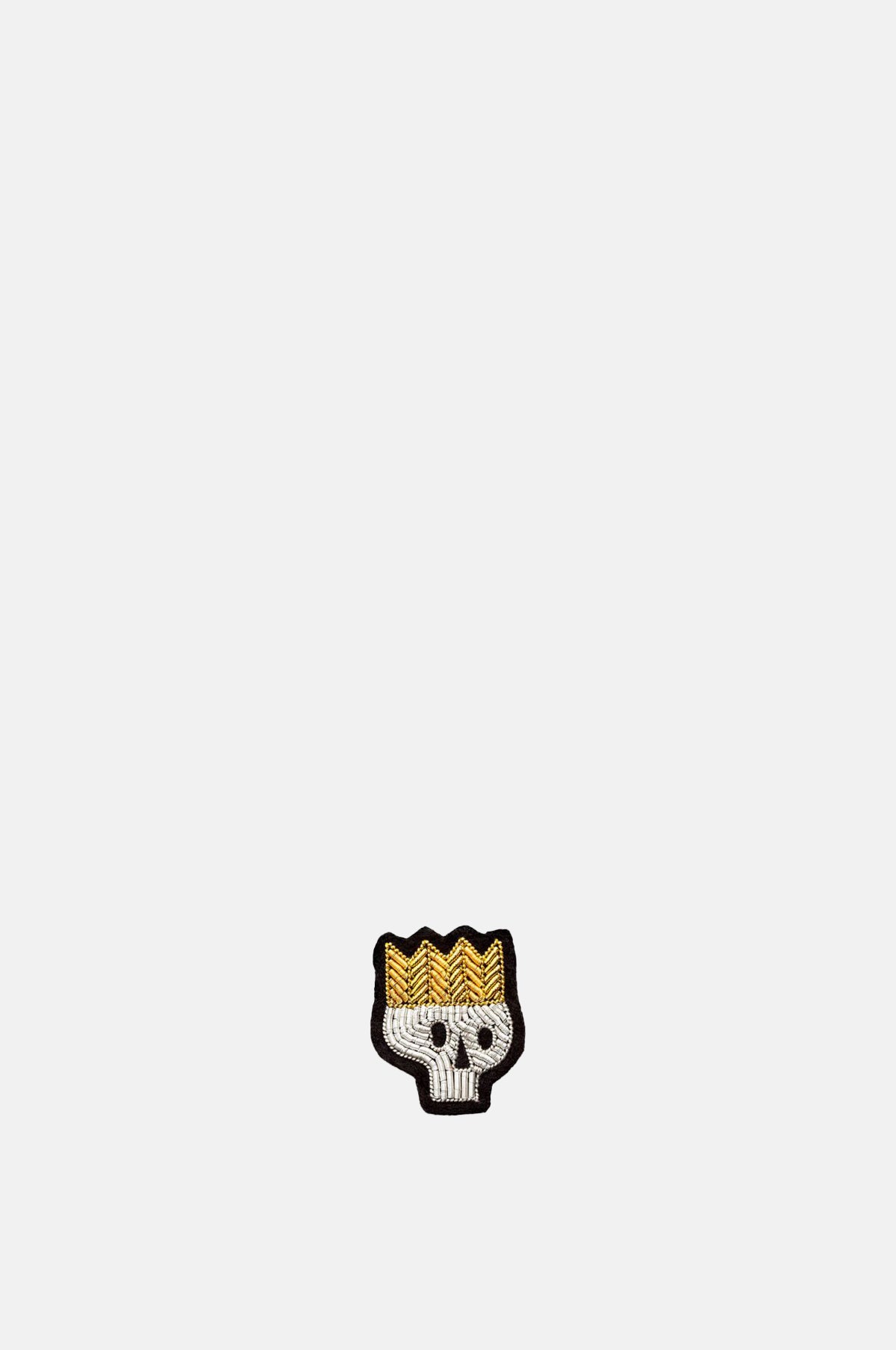 This skull brooch is full of character and is intricately made using silver and gold cannetille thread and topped off with a sparkling crown. Perfect for personalising your favourite garments and defining your style.