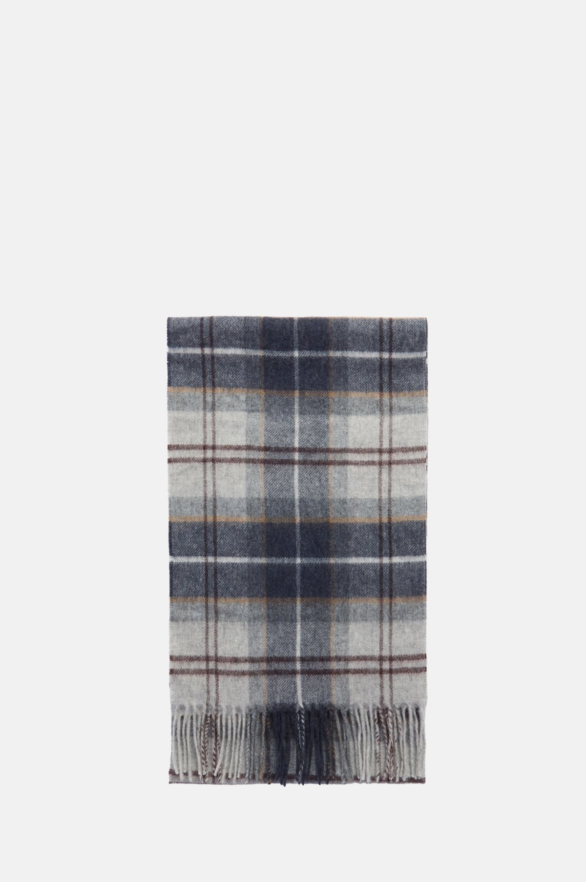 Wool Cashmere Tartan Scarf Grey Midnight Tartan