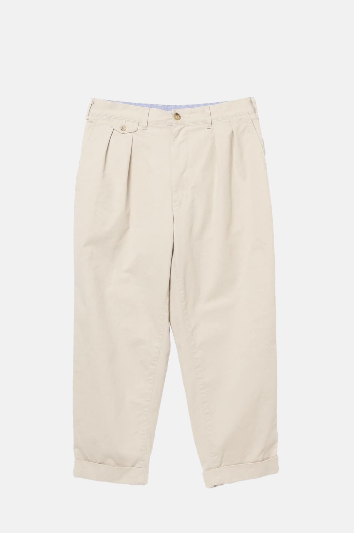 Beams Plus are most well known for their masterful interpretation of classic American menswear. Beams Plus harks back to the golden era of American casual wear and brings the rugged aesthetic of that age to the modern day, thanks to modern cuts and materials crafted with a Japanese attention to detail. The 2 Pleats Twill Pant in Cement is a tapered and cropped silhouette constructed of a soft cotton that can be dressed both up or down.