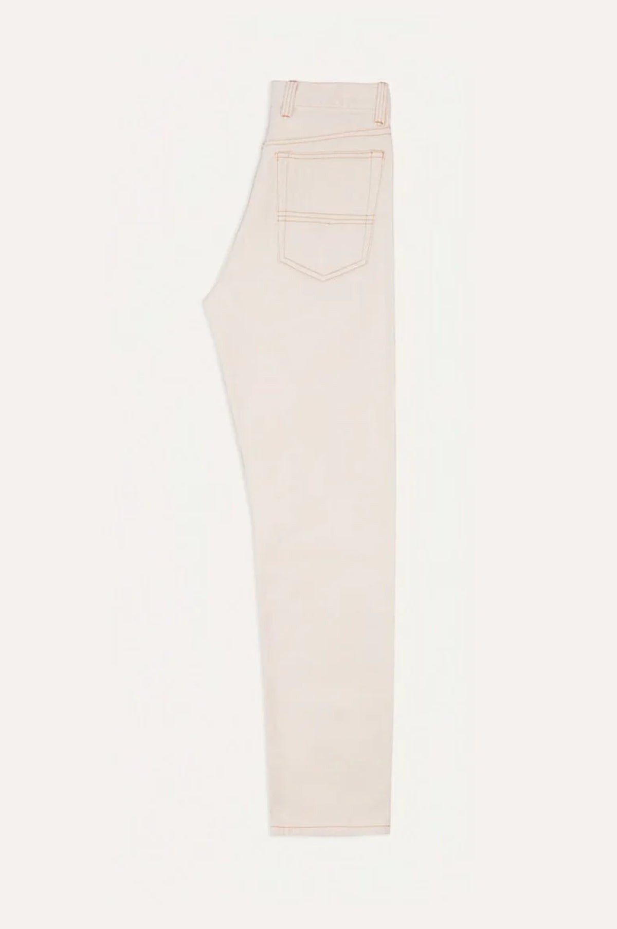 This classic pair of jeans is constructed from a high quality 12.7oz selvedge denim from Okayama, Japan. The denim is woven on an extremely rare shuttle loom and is dyed with natural indigo. Cut with a slightly higher rise and a relaxed, tapered fit, the jeans are finished with copper rivets and a unique slanted pocket design.