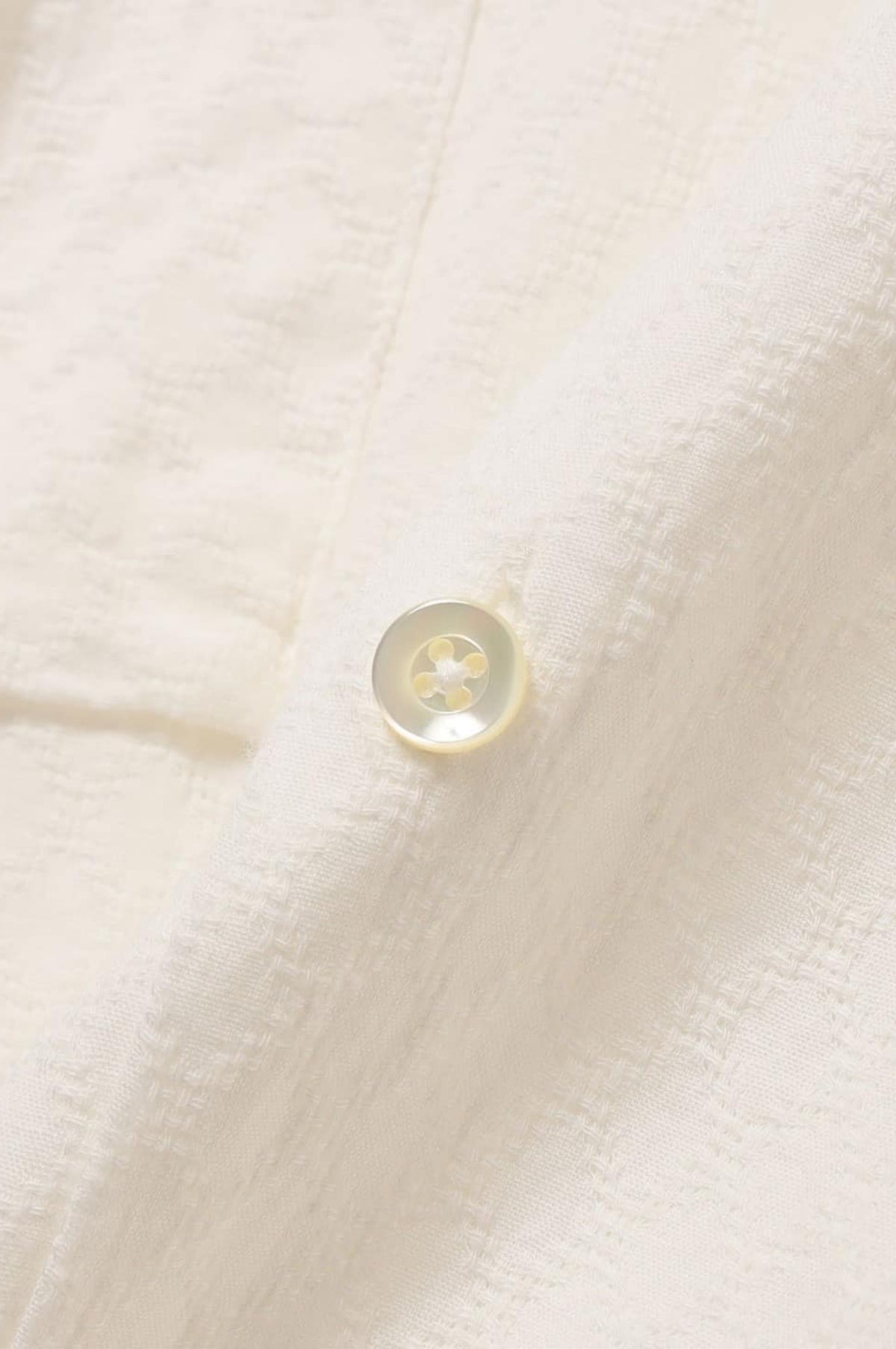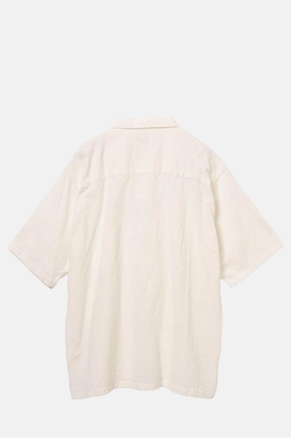 The Pilgrim Amedo Short Sleeve Shirt in White is a laid-back camp collar shirt defined by its distinctive four-pocket design and relaxed silhouette. Crafted from a premium Japanese cotton-linen blend, it features a breathable diamond-patterned Panama fabric woven on a dobby loom for a smooth texture and naturally wrinkled look. Lightweight and moisture-wicking, it's perfect for warm weather, offering comfort without compromising on style. The simple yet eye-catching pocket detail adds character to this effortlessly cool piece, making it ideal for casual wear with a refined edge.