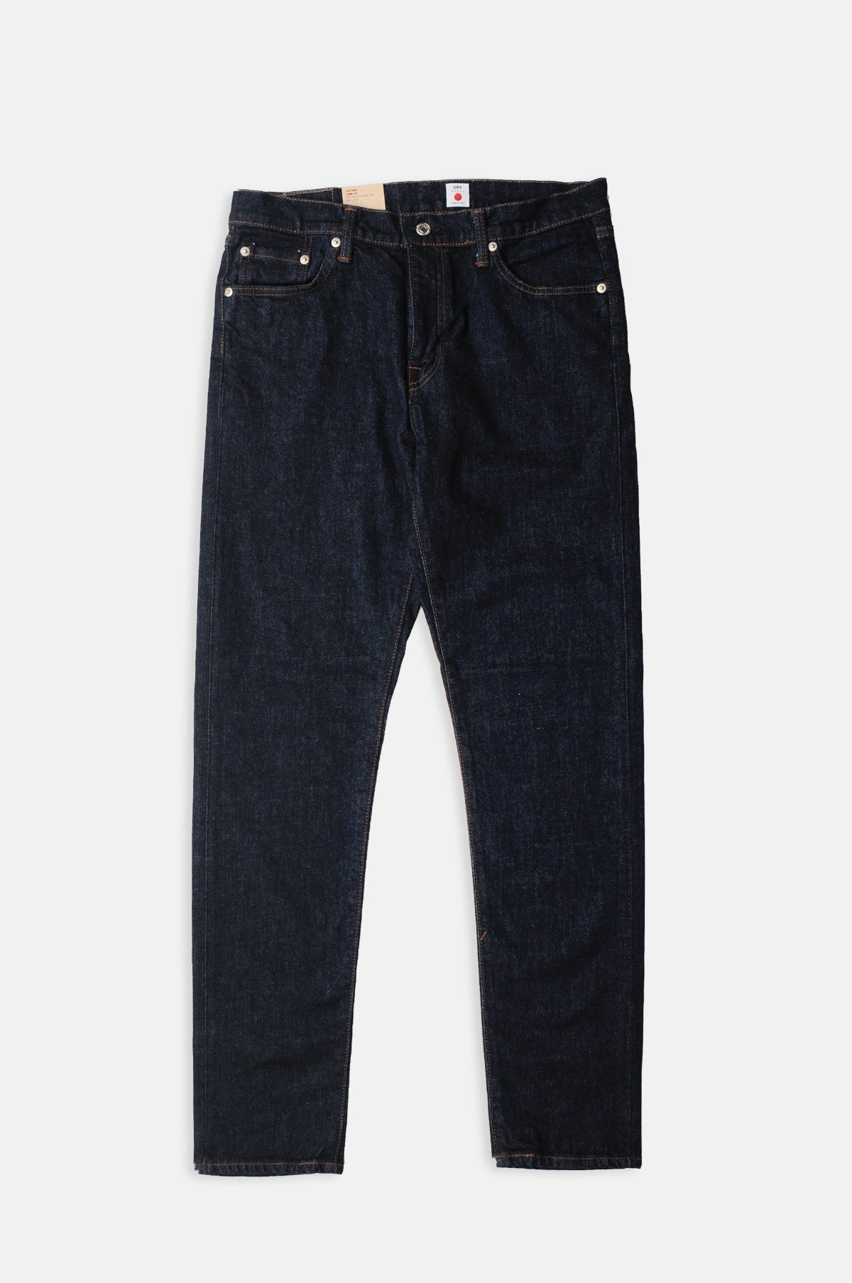 Edwin's Slim Tapered range features a modern slim fit with a slightly tapered leg and a low-rise, designed to be worn on the hip. Coming in a classic blue rinsed and constructed of the 13oz Kaihara denim which is hardwearing whilst still having a slight stretch.