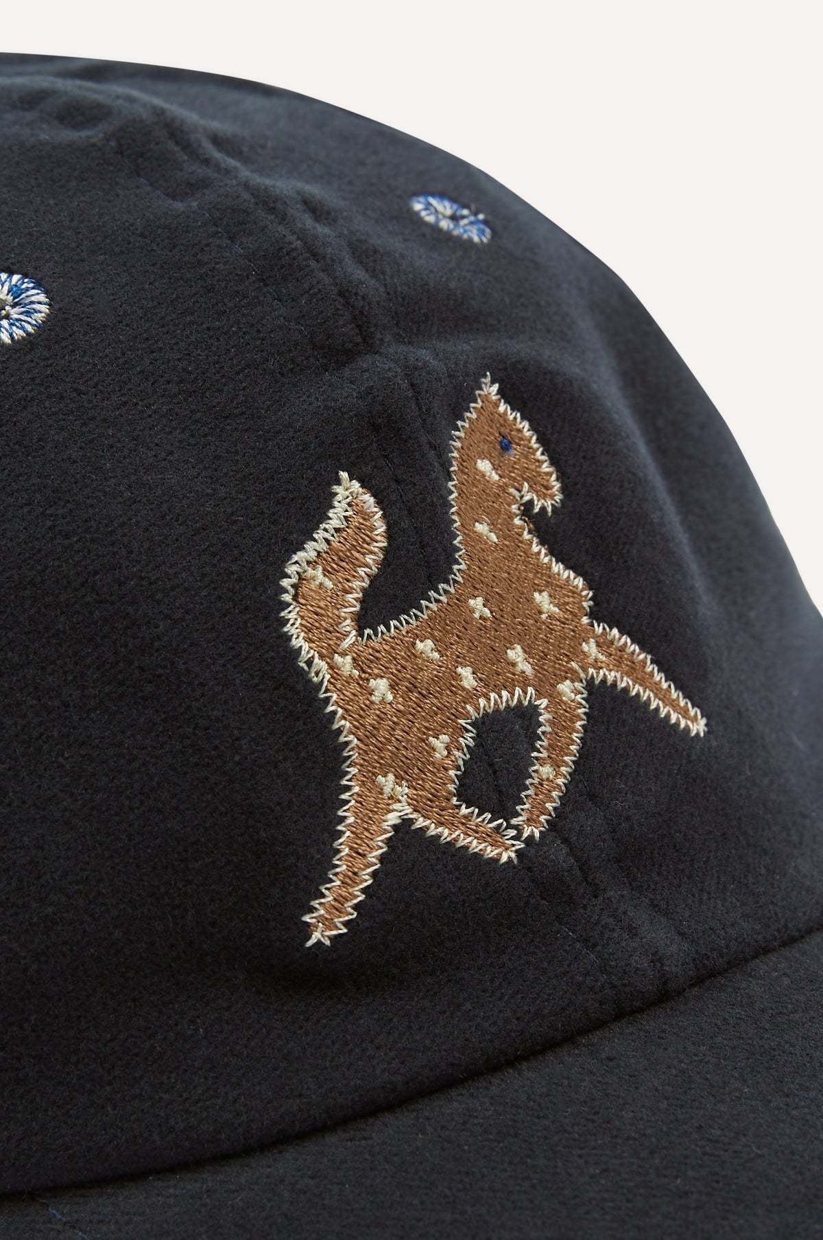 Horse Applique Moleskin Baseball Cap Dark Navy