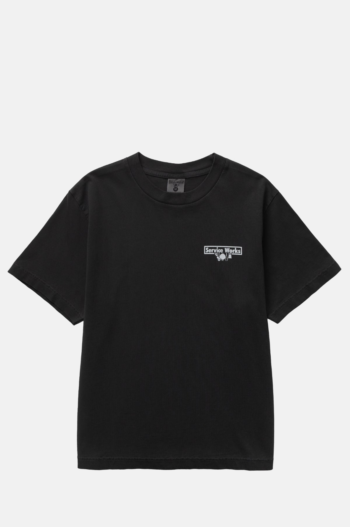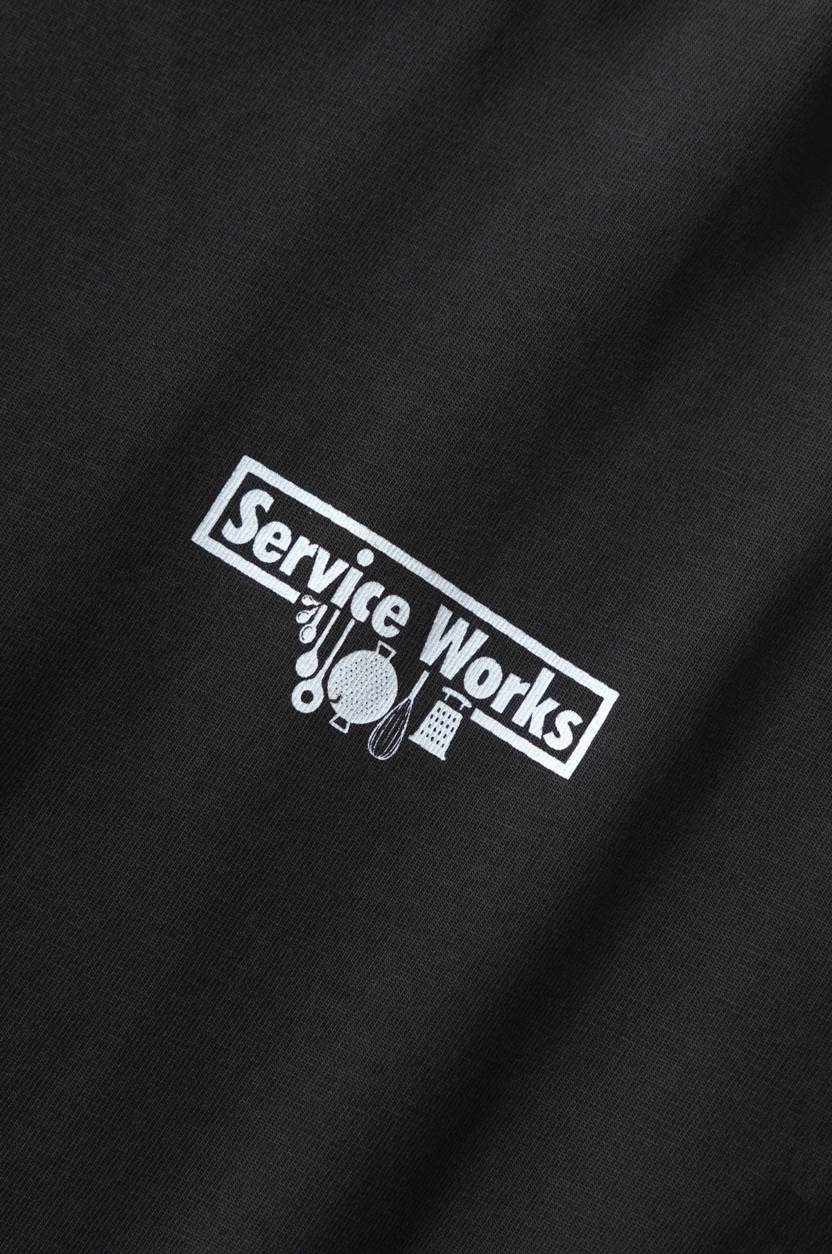 Designed for Chefs, adapted for all. Service Works offer functional clothing that originally started as uniforms for restaurants in London but now serves as the ideal everyday wear. The Pigment Dyed Trademark Tee in Black is a classic logo tee with a small chest print and features an worn in washed feel.
