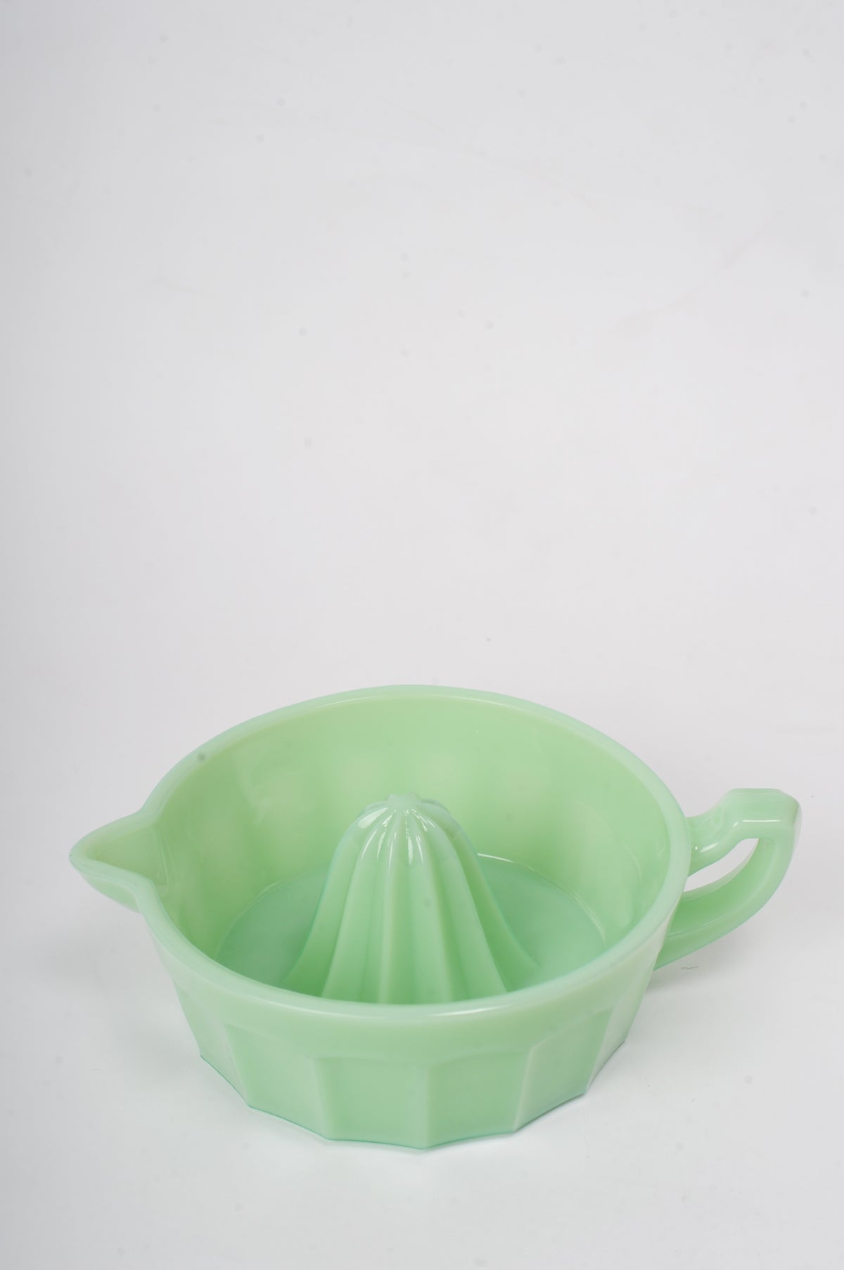 No kitchen is complete without a beautiful juice reamer! Crafted from bright green milk glass, squeeze away lemons and oranges whilst easily collecting and pouring the fruits of your labour. We have this available in Georgia Blue, Jade and Milk.