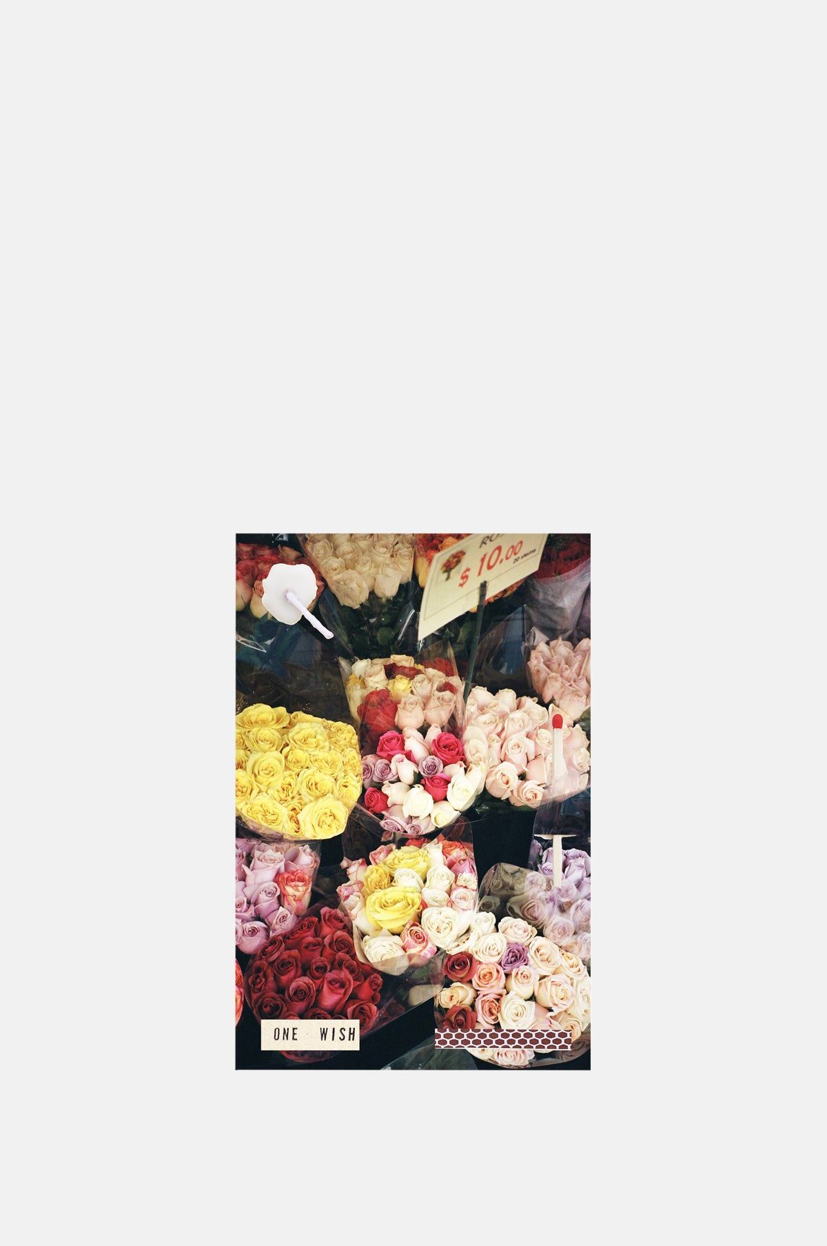 Make their dreams come true with this unique Wish Card featuring multiple bunches of roses on a market stall.