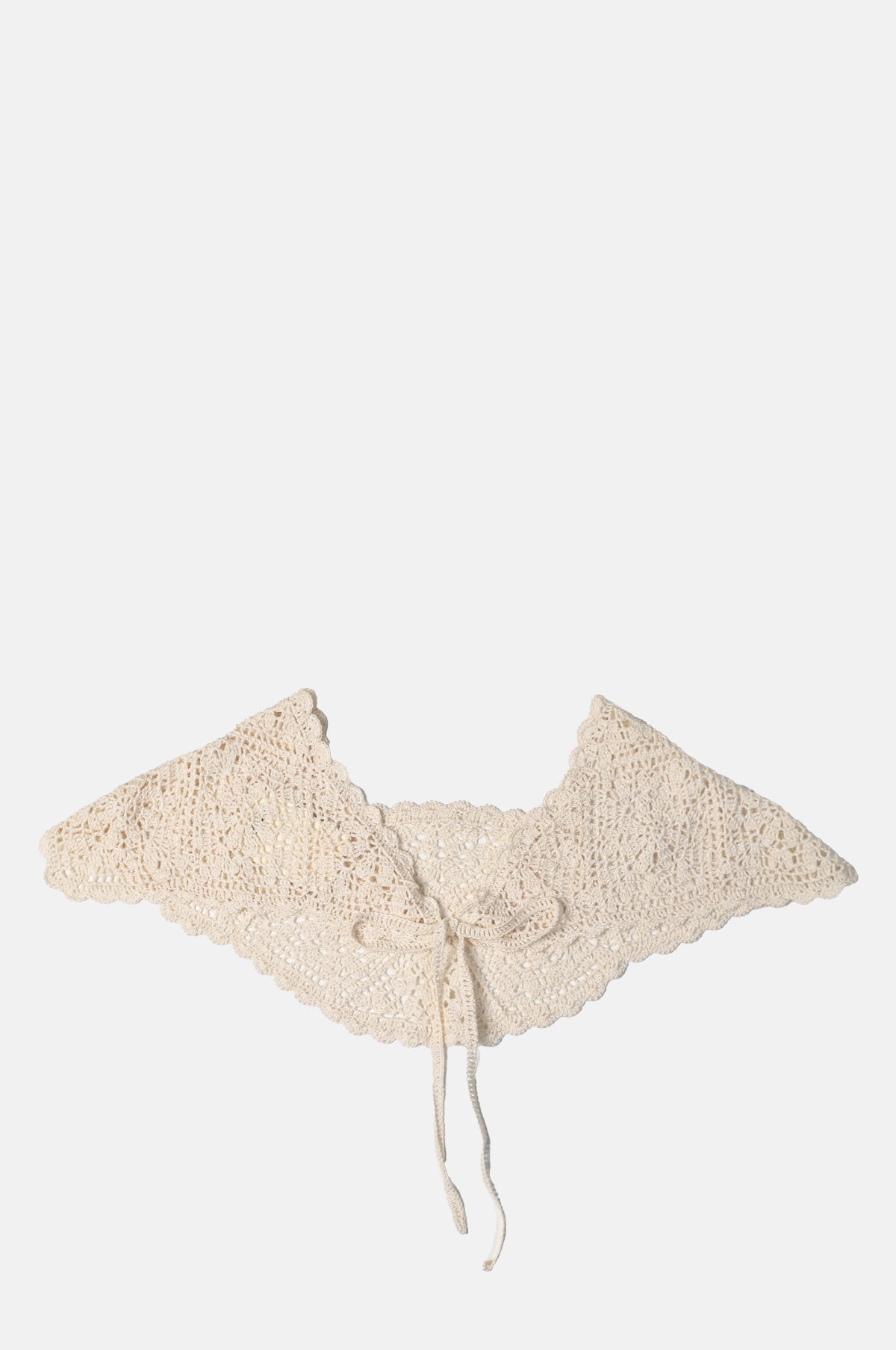 Intricately crocheted by hand, this beige collar from Nyni is an elegant overlay that can be draped over shirts, jumpers, t-shirts and dresses. It features a scalloped trim and delicate tie fastenings. Lightweight, it is a versatile accessory that complements any outfit.