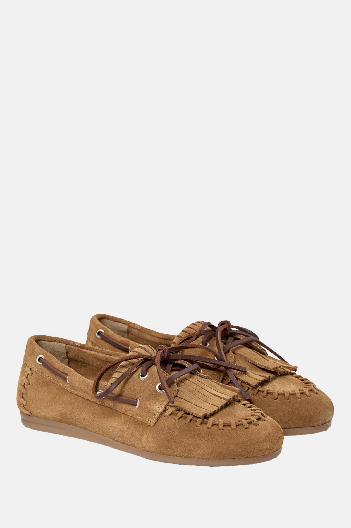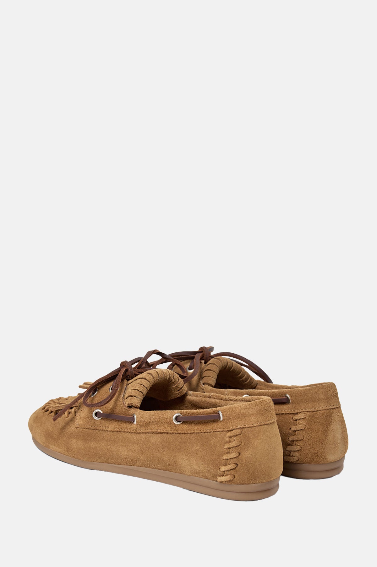 The Magda loafer represents a style that is at once perfectly on trend and also timeless in design. With a classic silhouette, these warm tan brown suede shoes have all the subtle details that give the perfect elevated look: frill front detailing, exposed stitching and cord tie closure. With a comfortable rubber outsole, these soft moccasin-style loafers will be your go-to for a super cool yet laid-back aesthetic that steers away from sneakers!