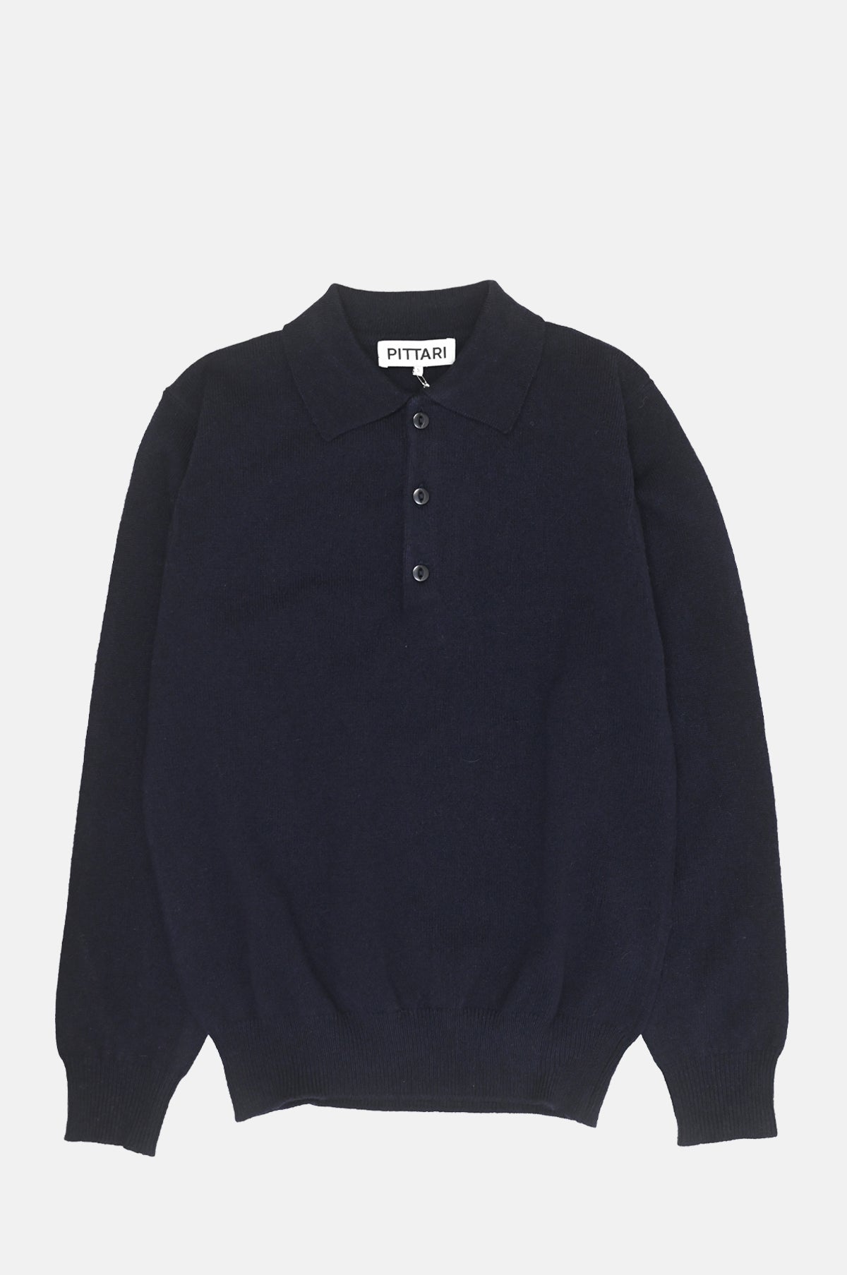 The Long Sleeve Merino Polo in Navy is Pittari’s refined take on a wardrobe staple. Knitted in extra-soft lambswool, it’s finished with a classic three-button placket and ribbed cuffs for a clean, minimal look. Ideal for smart-casual layering.