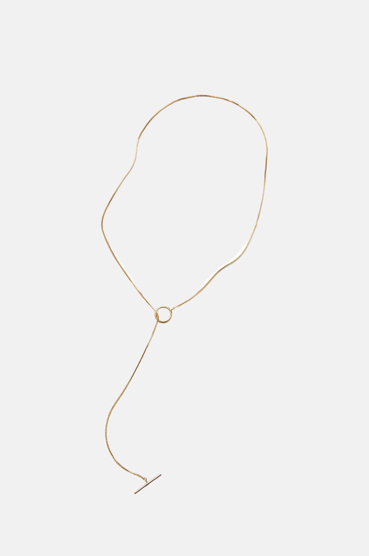 Hope Necklace is an elegant and simple necklace featuring a decorative T-bar clasp, composed of a slender bar and a beautifully shaped ring. The clasp is integrated into the design, adding a modern and balanced expression that embodies simplicity and strength.