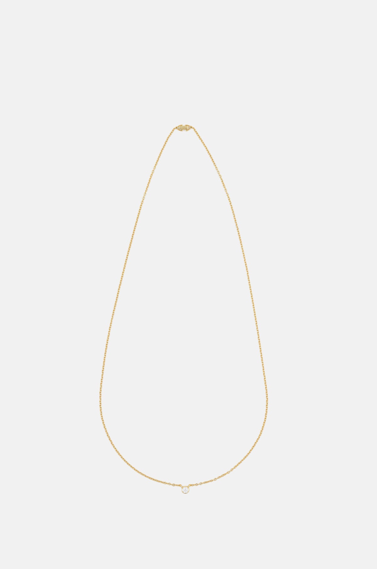 A floating stone set in 18k gold plated 925 sterling silver that adds a delicate sparkle to your décolletage. It has a graceful yet strong presence.