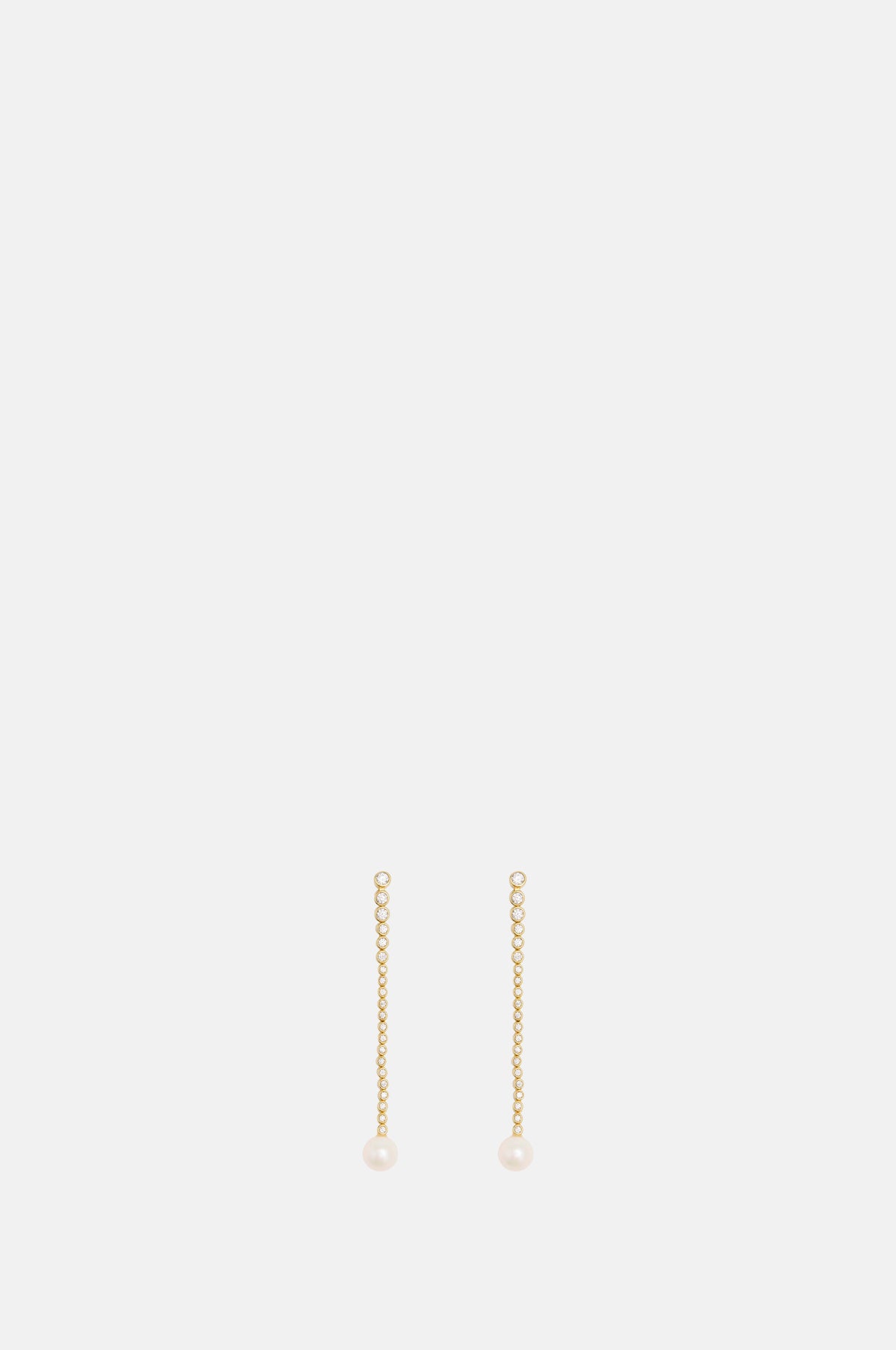 A stunning combination of varying sparkling cubic zirconia stones set in 18k gold plated 925 sterling silver, featuring a beautiful natural freshwater pearl at the bottom. These statement earrings will make you shimmer and shine with every move.