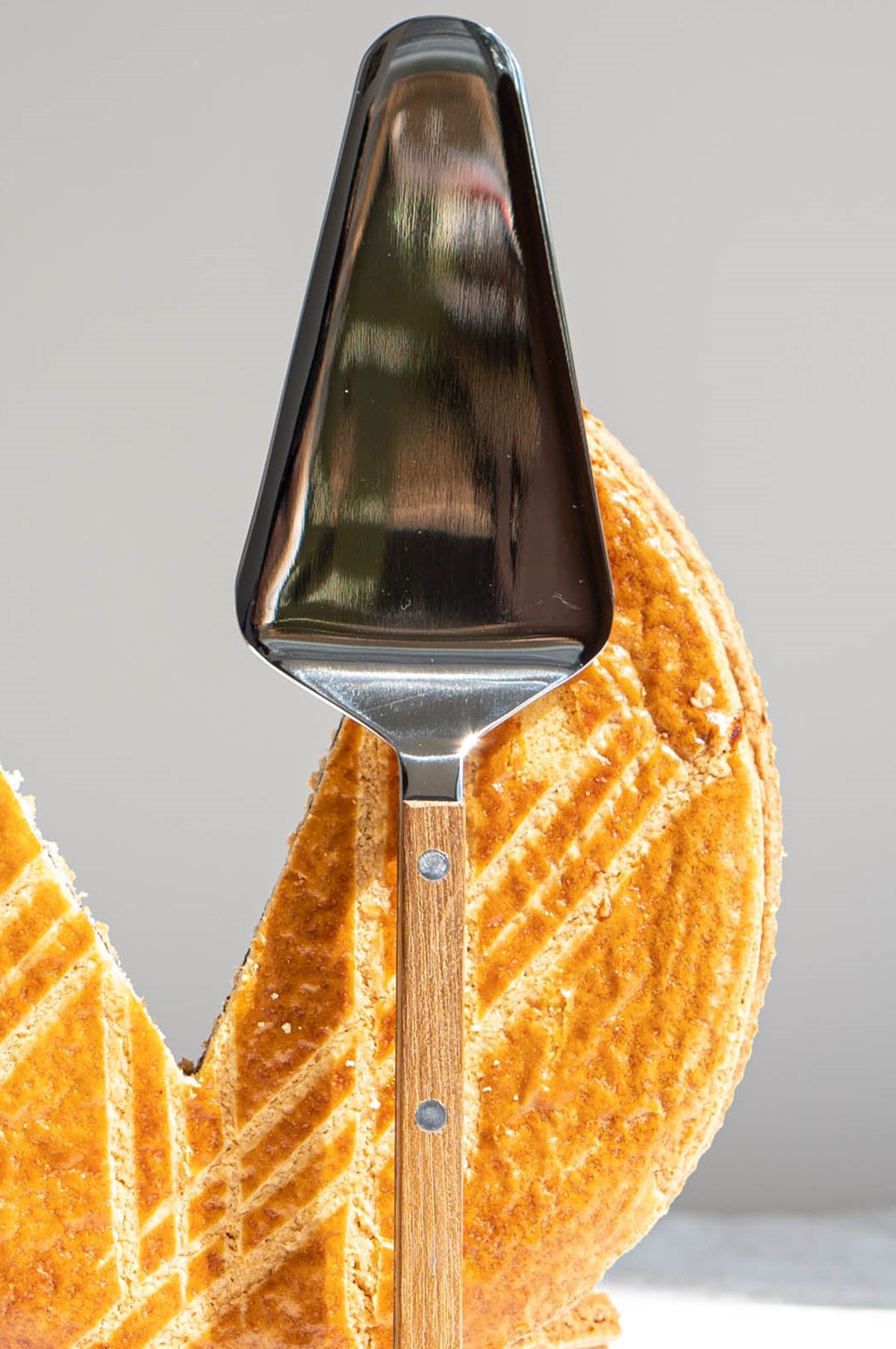 Inspired by Parisian terraces, restaurants, and cafes this tart server from Sabre Paris has all the elegance of French kitchenware with a modern touch. With simple styling, visible rivets, and the use of superb materials, this attractively curved teak tart server will make a vital accessory for serving all kinds of pastries and sweet or savoury tarts.