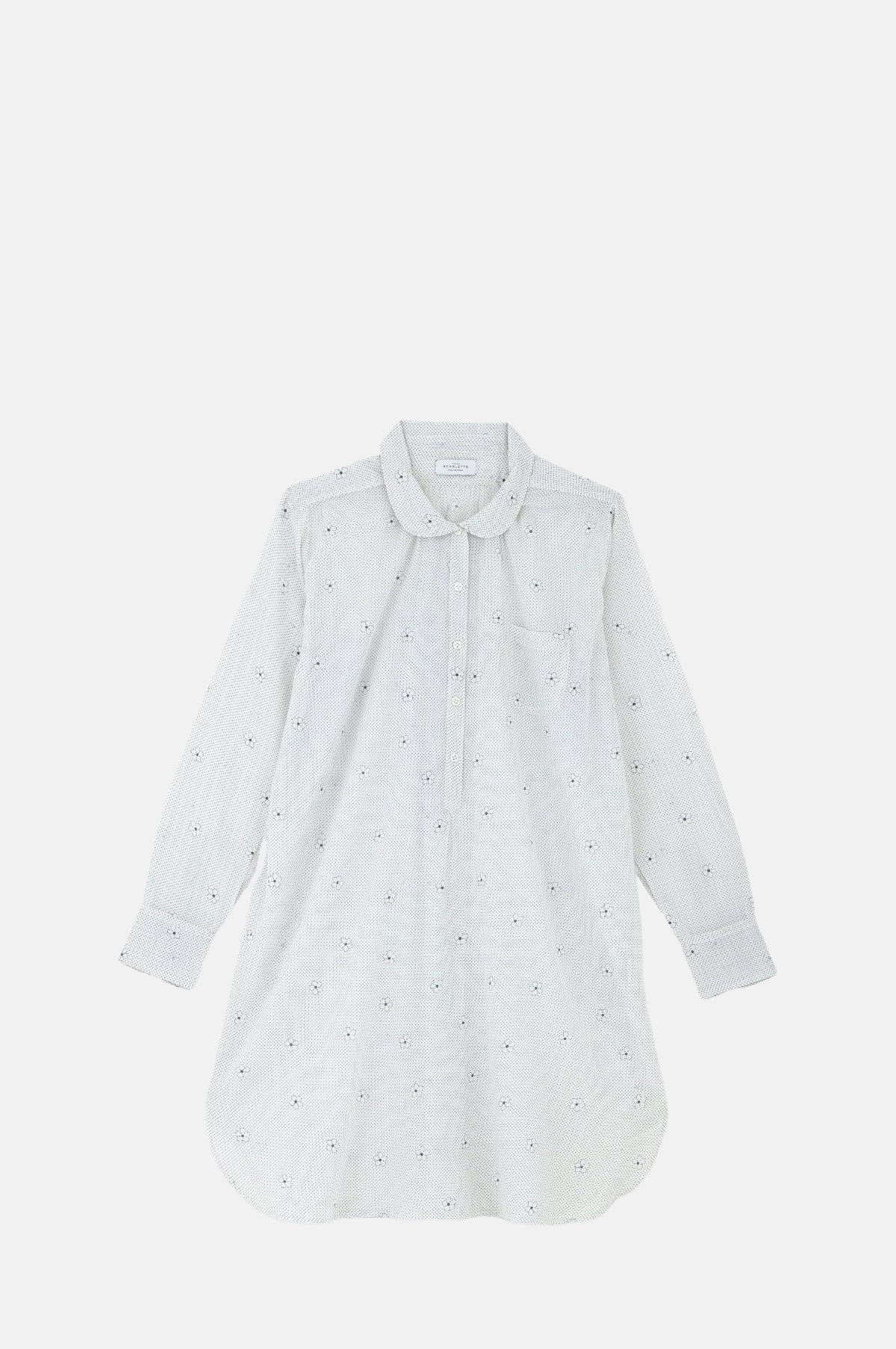 Very Wendy Moira Angela Darling, this blue floral -and-dotted cotton nightdress from Scarlette Ateliers features a sweet Peter Pan collar - and might just carry you off to Neverland.