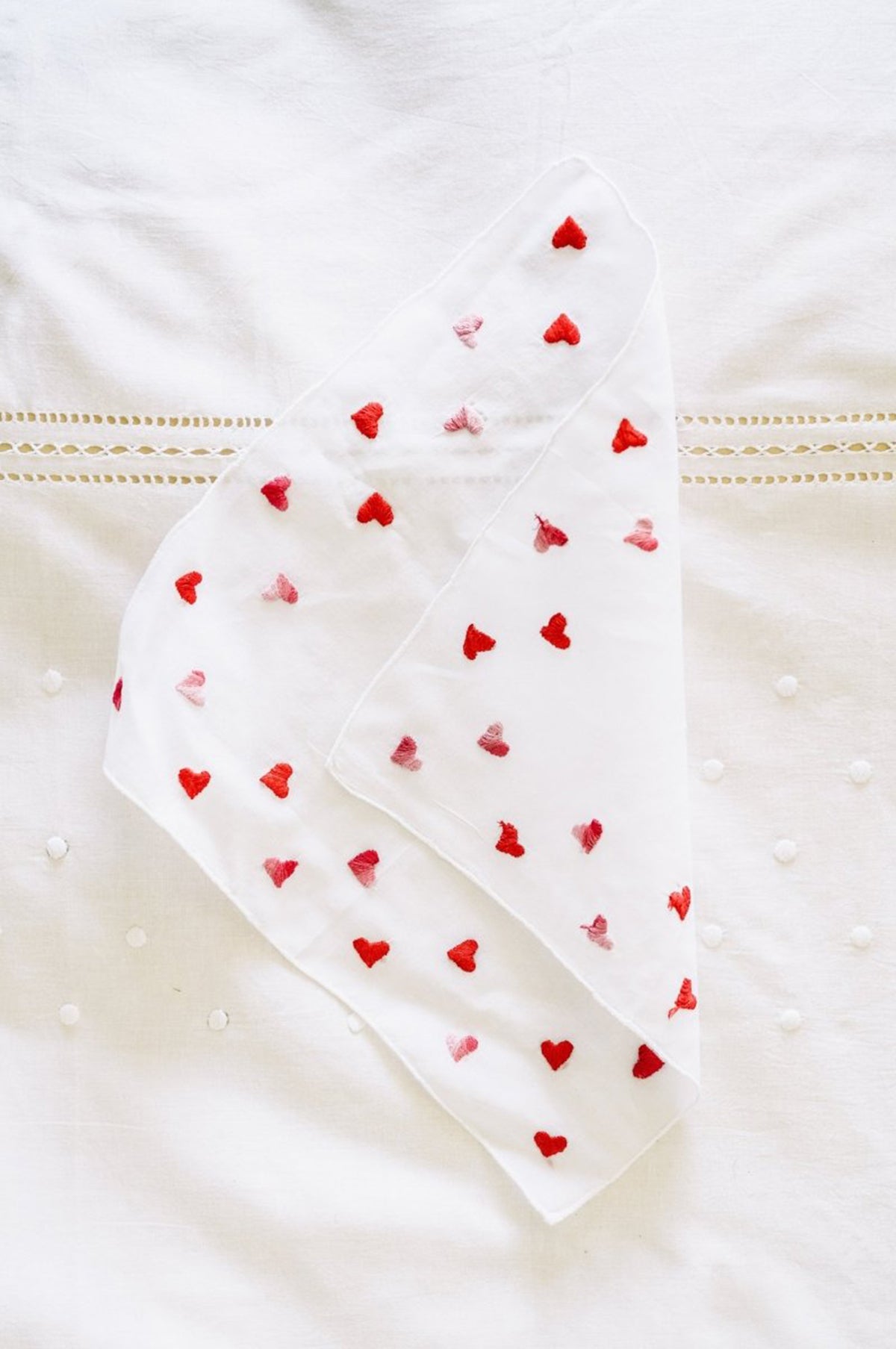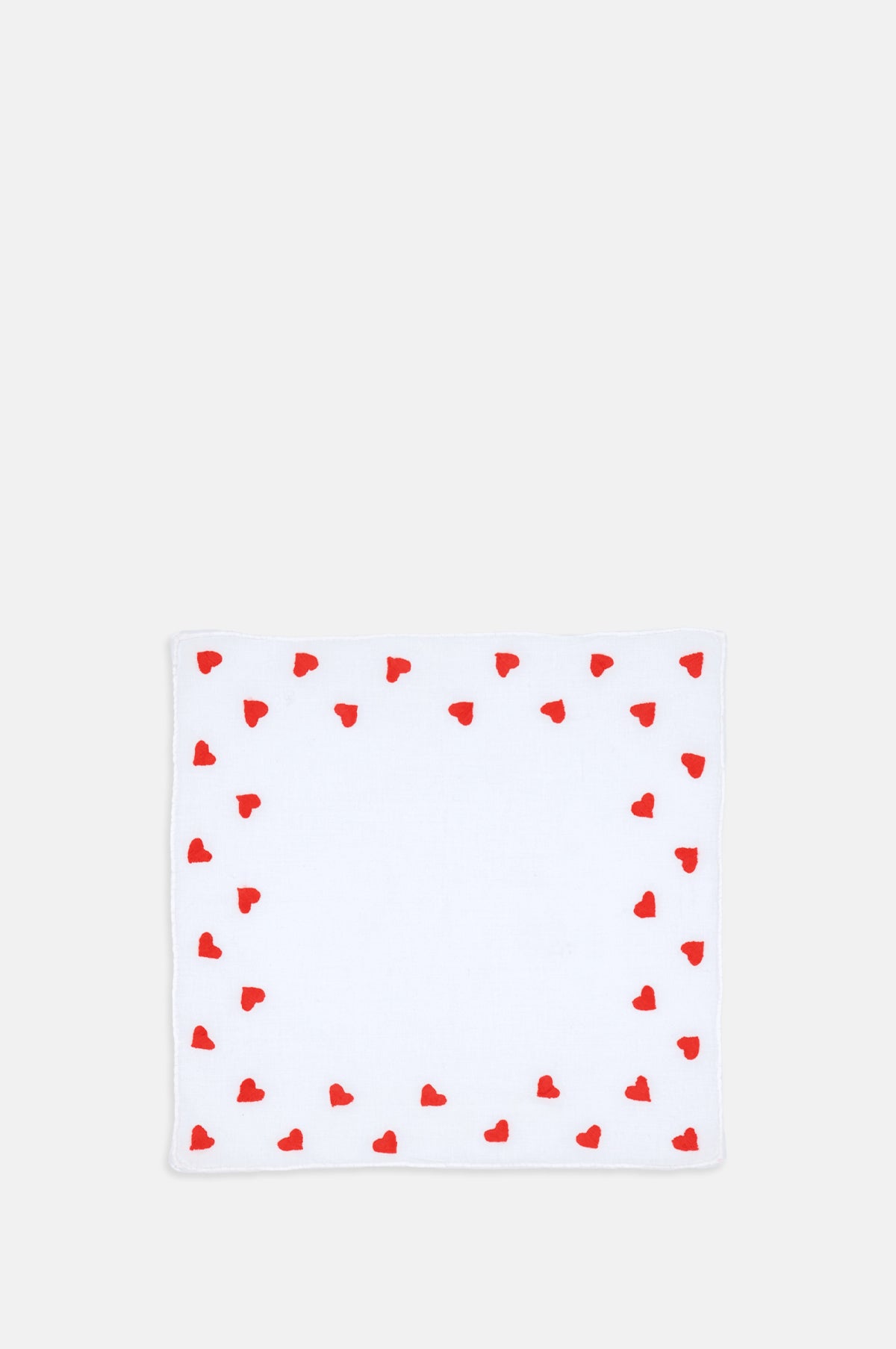 A romantic adornment, handkerchiefs in their earliest forms can be traced back to Ancient Greece and Egypt. By Elizabethan times, they had come into common use and later became symbols of flirtation throughout the Georgian, Regency, and Victorian eras. A cheeky nod to this historic love language, these cotton handkerchiefs from Scarlette Ateliers let you (literally) wear your heart on your sleeve. Available in four patterns; this one is crafted from a crisp cotton voile with a heart-embroidered border.