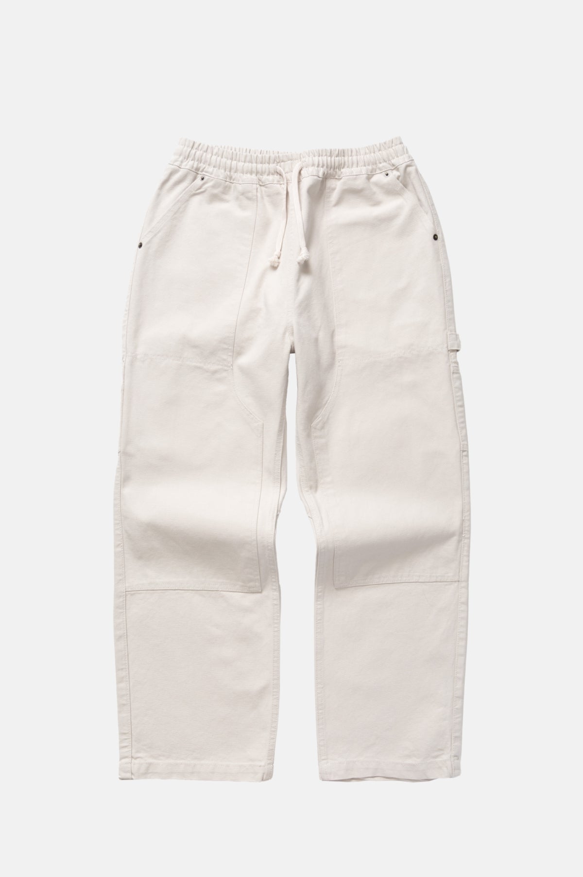 Born from a love of elasticated waists and good food, Service Works is a brand designed for chefs, and adapted for all. Made from a bone coloured canvas cotton, these chef pants have been given a utilitarian twist. They have a relaxed, straight leg and functional details like a hammer loop, utility pockets, and key loop.