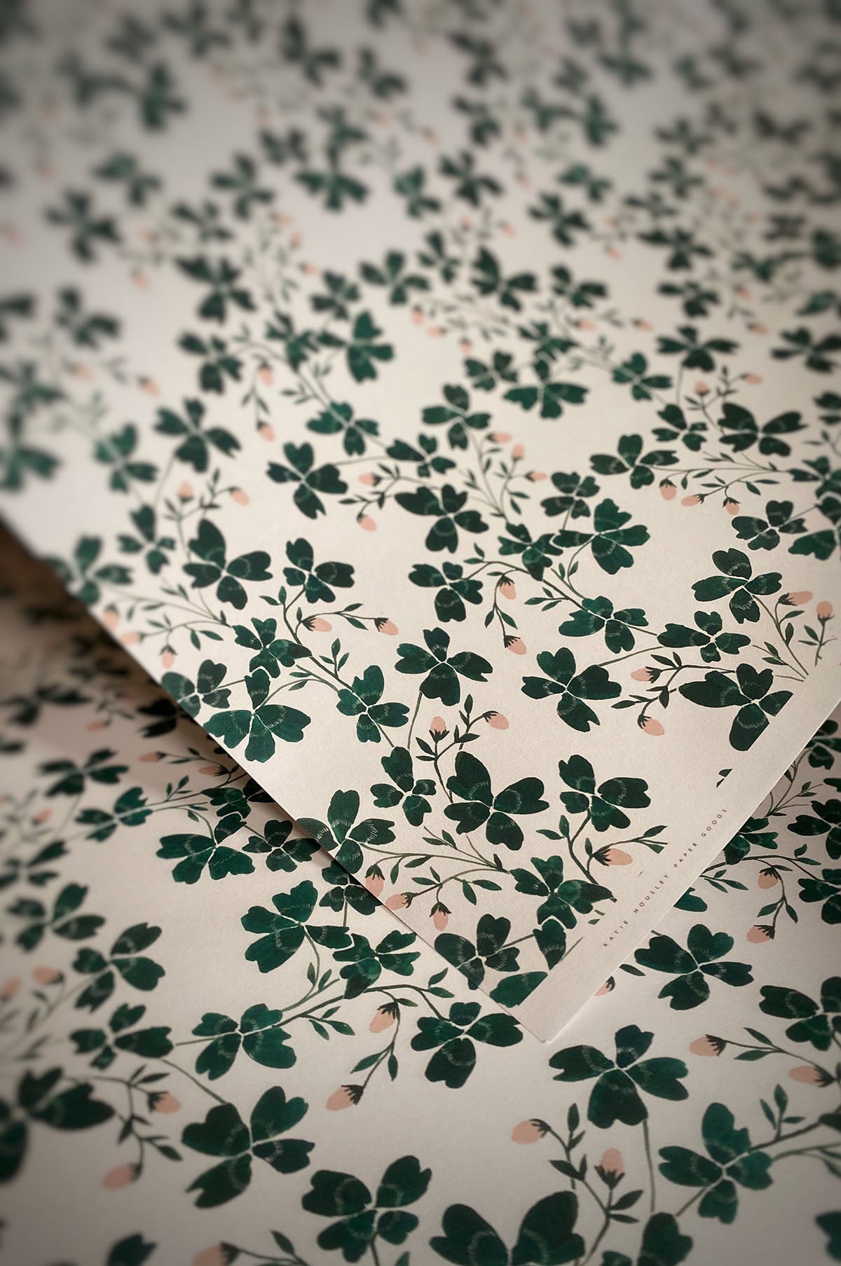 Elevate your gifting with this luxury green and soft pink botanical ivory gift wrap, beautifully hand-illustrated in Katie Housley's studio by the sea.