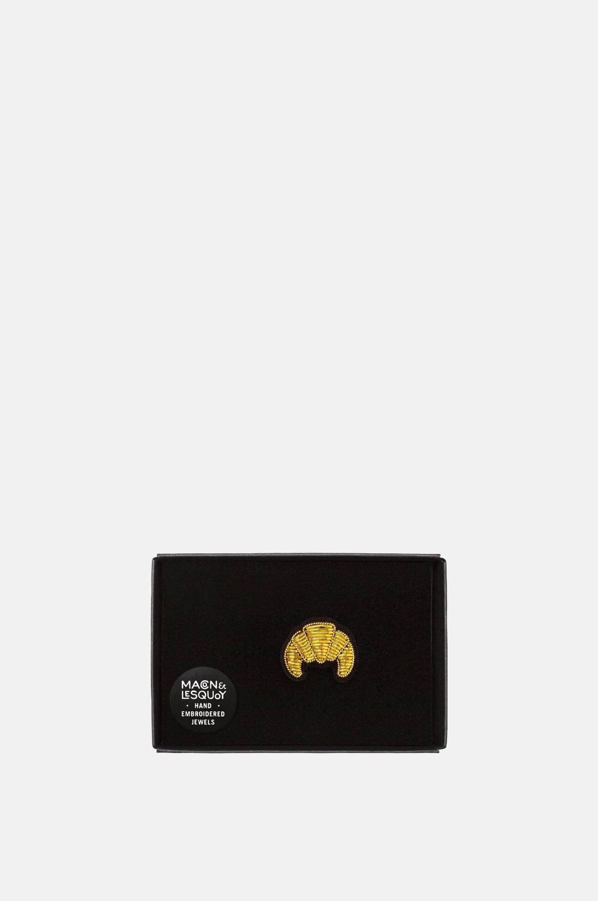 Our favourite pastry in a brooch? Yes please, we'll take two! This croissant brooch is crafted from golden cannetille thread adding some sparkle to this much-loved pastry. Pin on a coat lapel or a bag for playful accessorising.