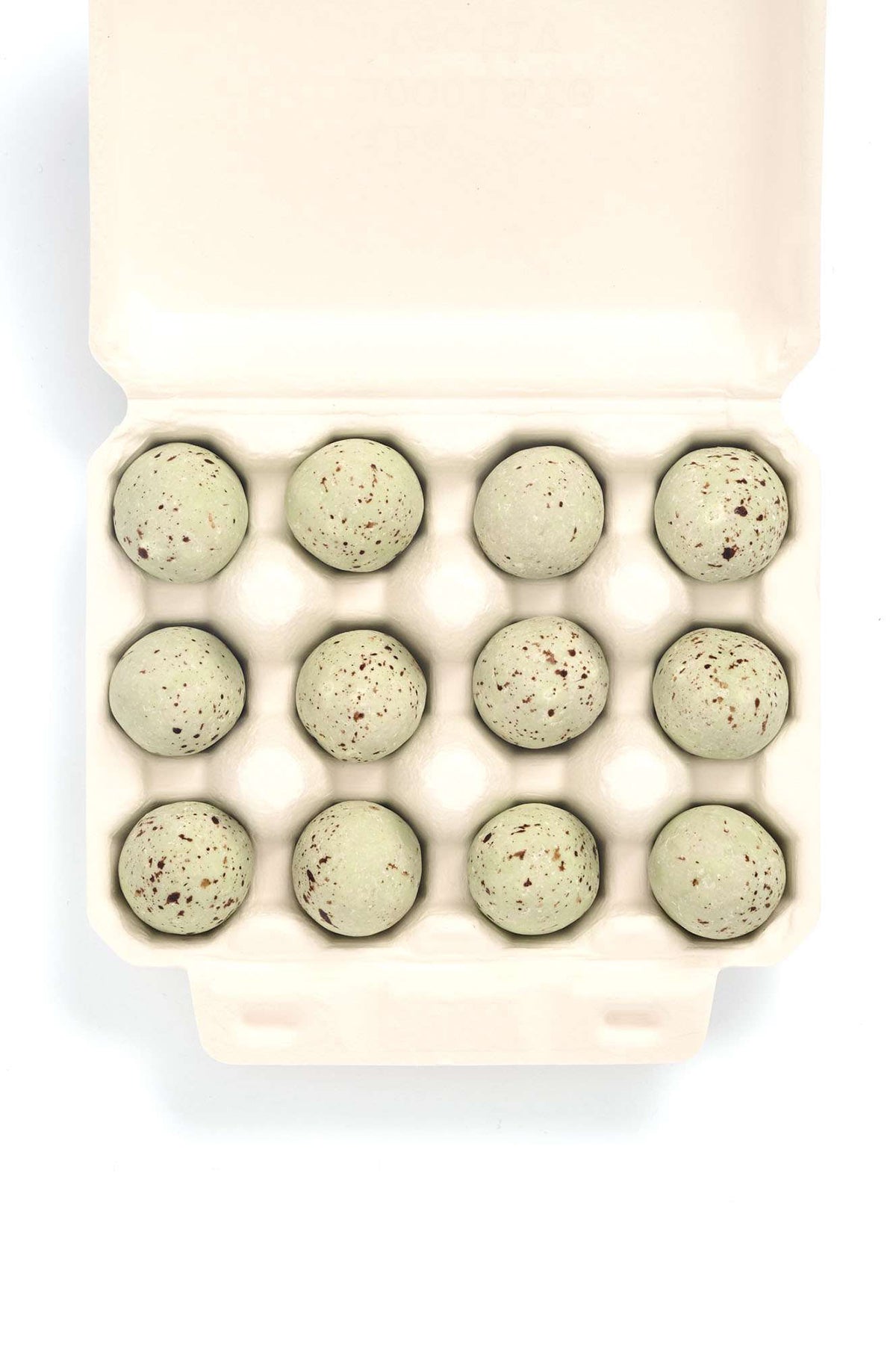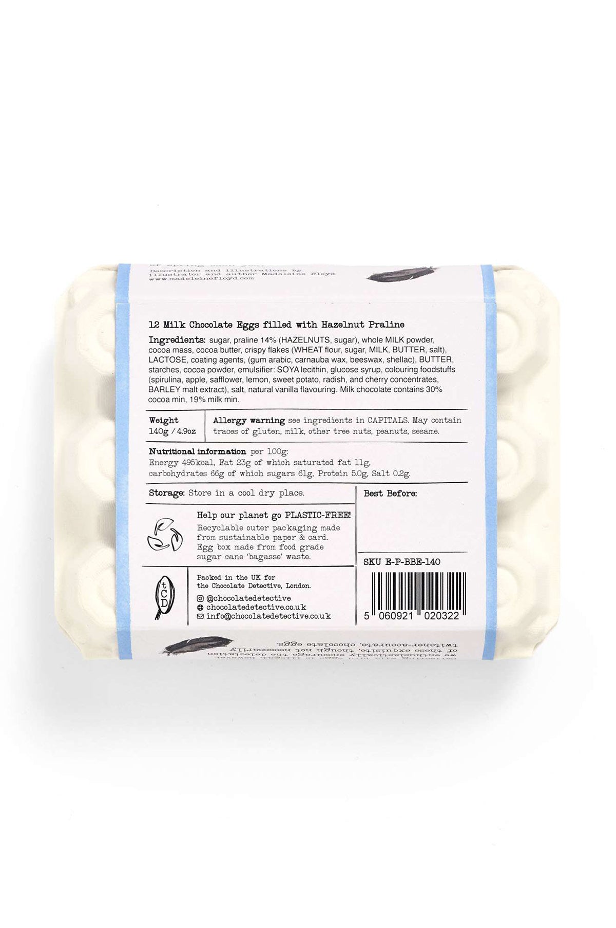 These are the most charming (chocolate) bird's eggs you will find! A beautifully illustrated box filled with a dozen delicious eggs made in France with a delicate hazelnut praline and Ecuadorian origin dark milk chocolate.