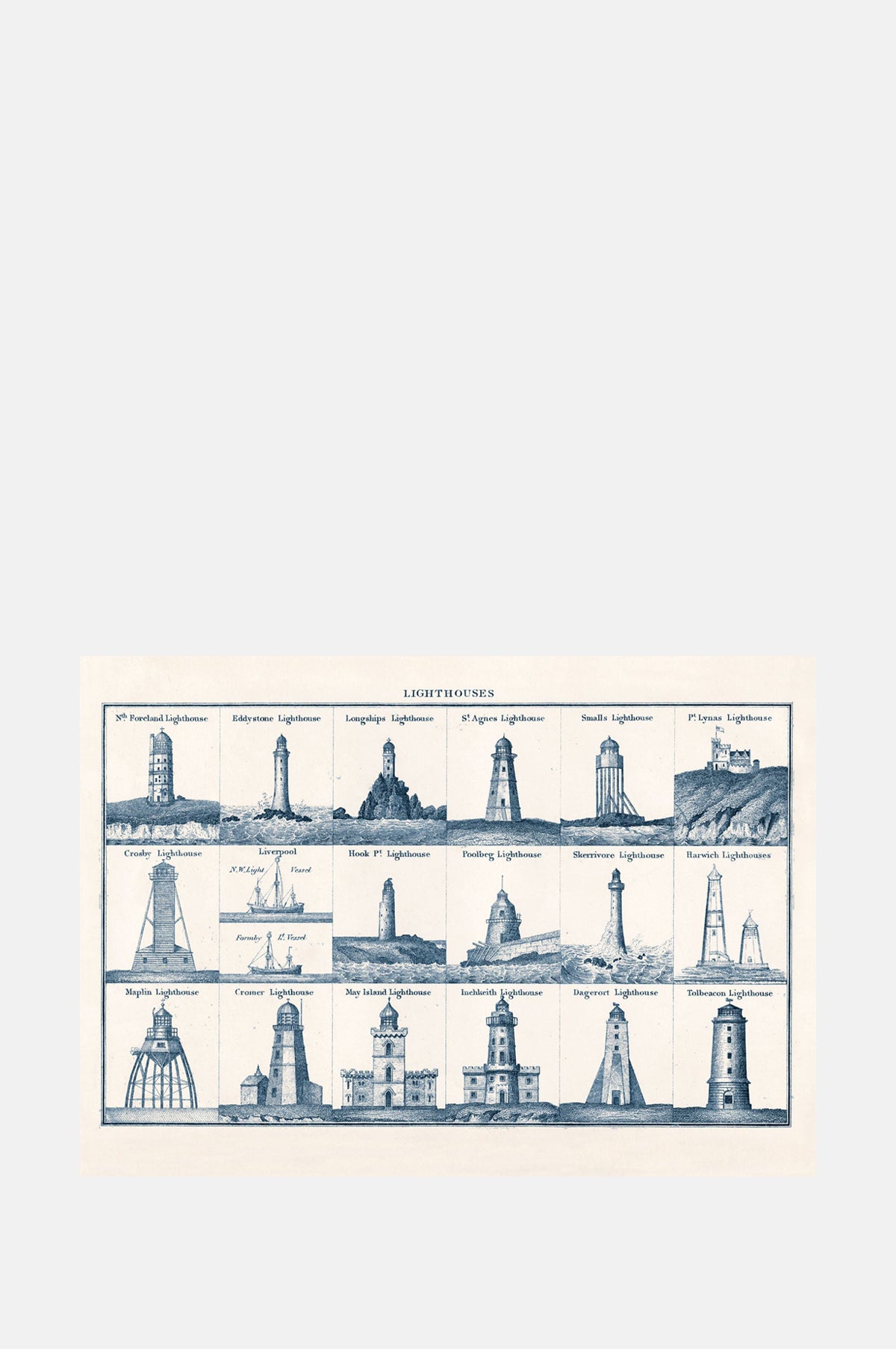 Adapted from the frontispiece of The Seaman’s New Guide and Coaster’s Companion (1857) this elegant greeting card features line drawing illustrations of famous lighthouses around Britain and Ireland.