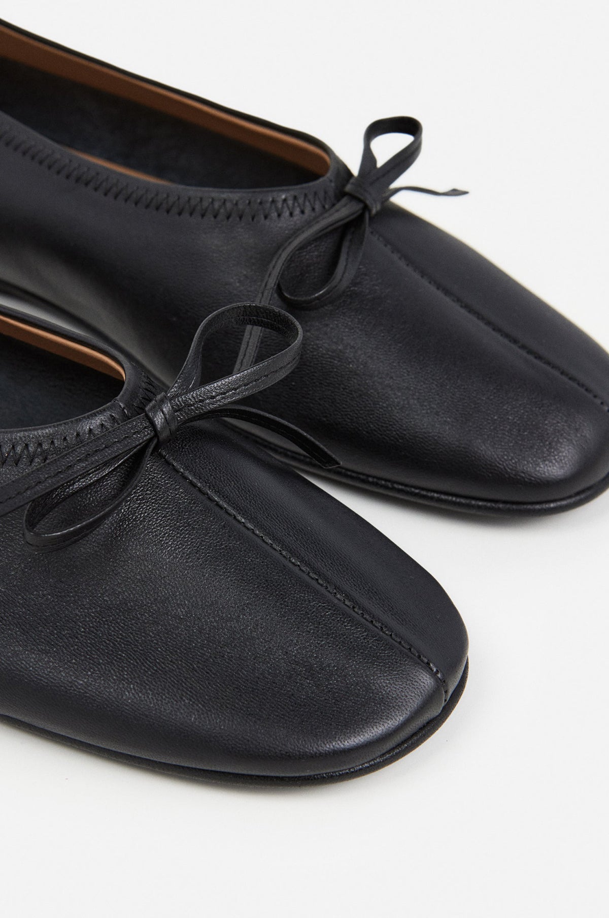 A striking mix of androgyny and femininity, the blaise ballet flats in black will elevate any outfit. Crafted from goat leather, these feature a split toe seam, bow and rounded toe. A contemporary take on a classic, we will be styling our simply with barrell leg jeans and a t-shirt.