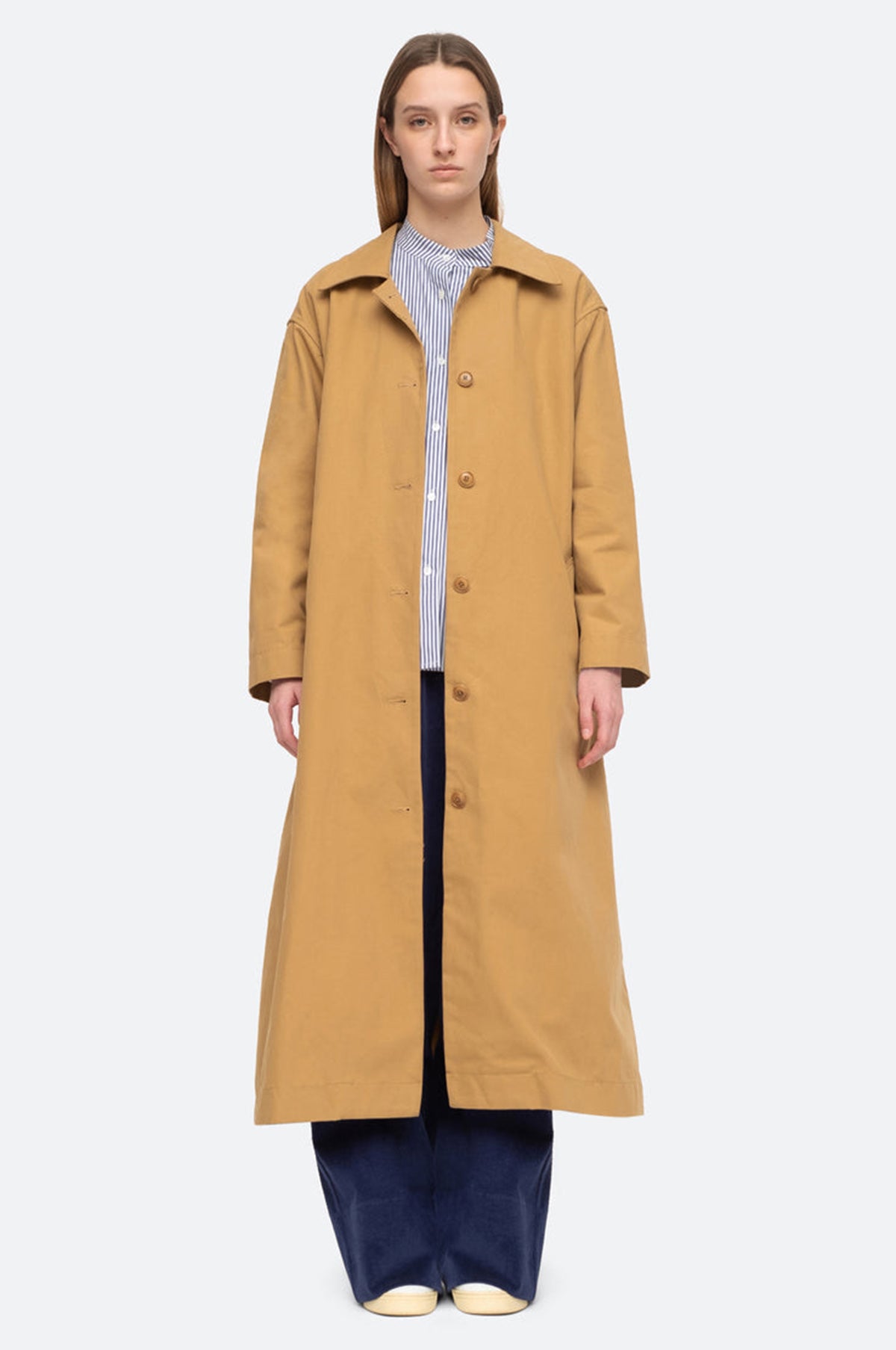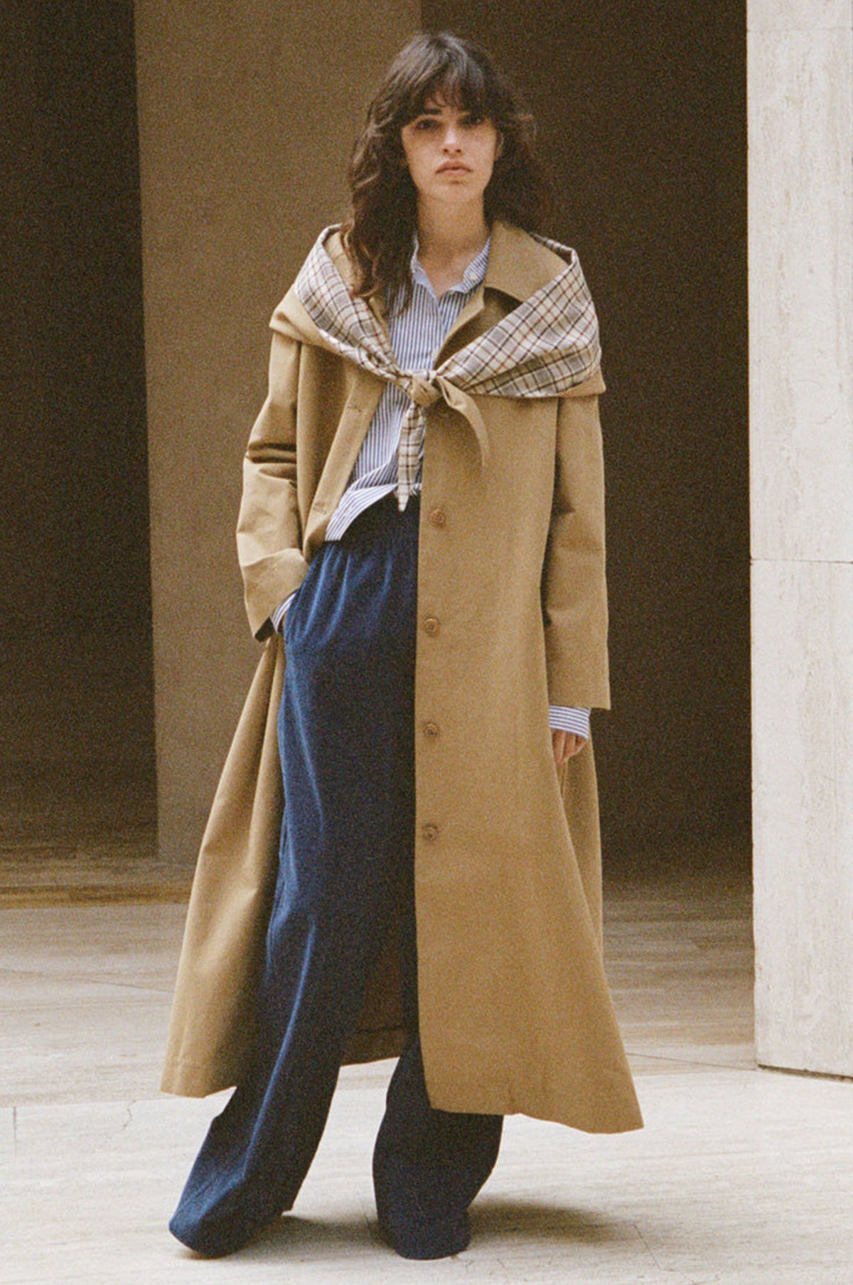 The Beatriz style is the trad trench coat of dreams. A classic camel raincoat style, it has a long length, button front and smart large collar. If you want to add a little extra flair to the look then arrange the chic plaid hood as a scarf for a little contrast.