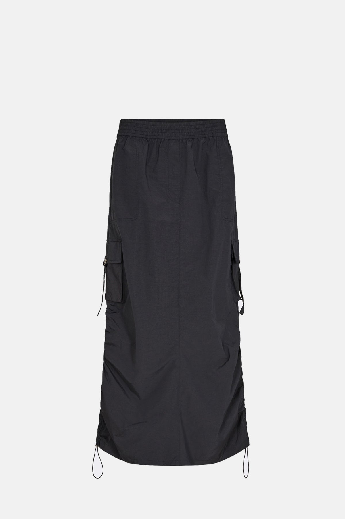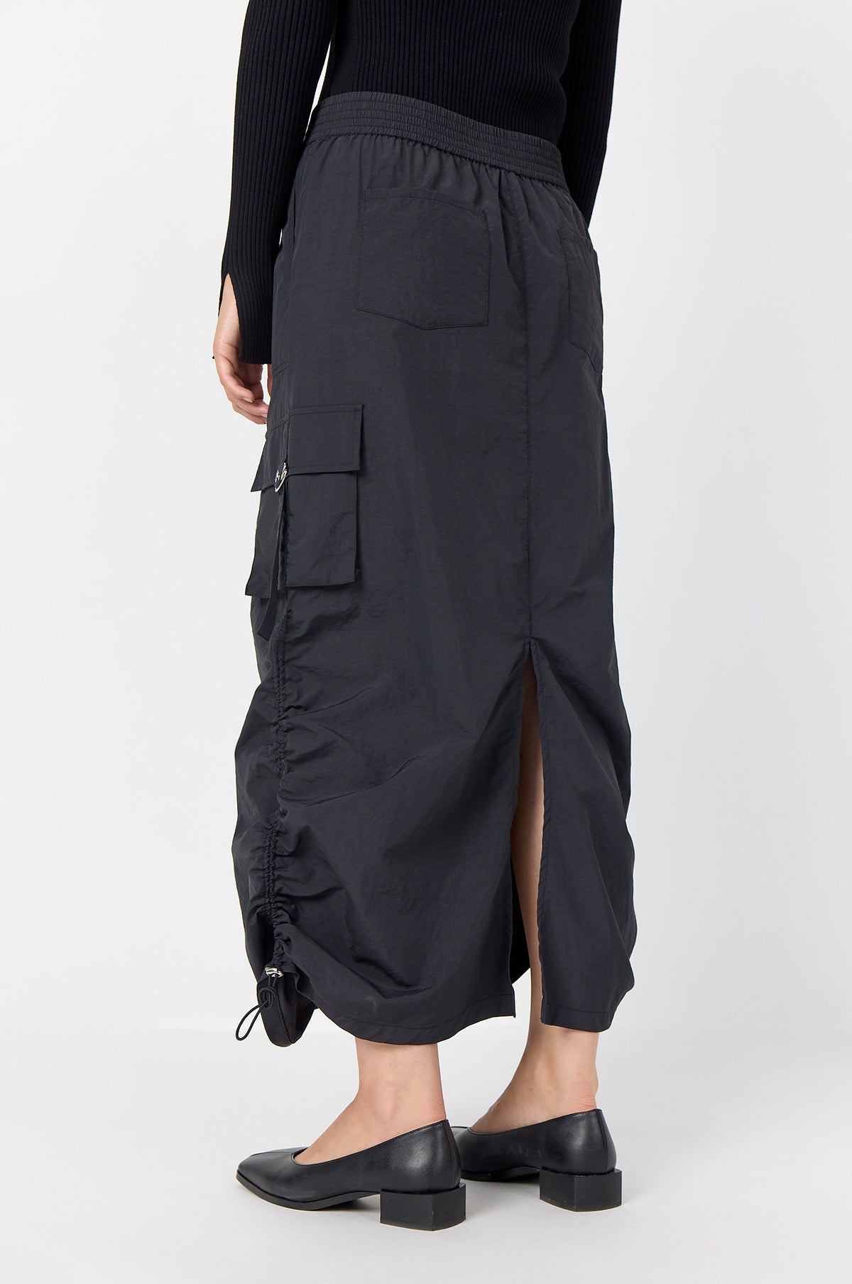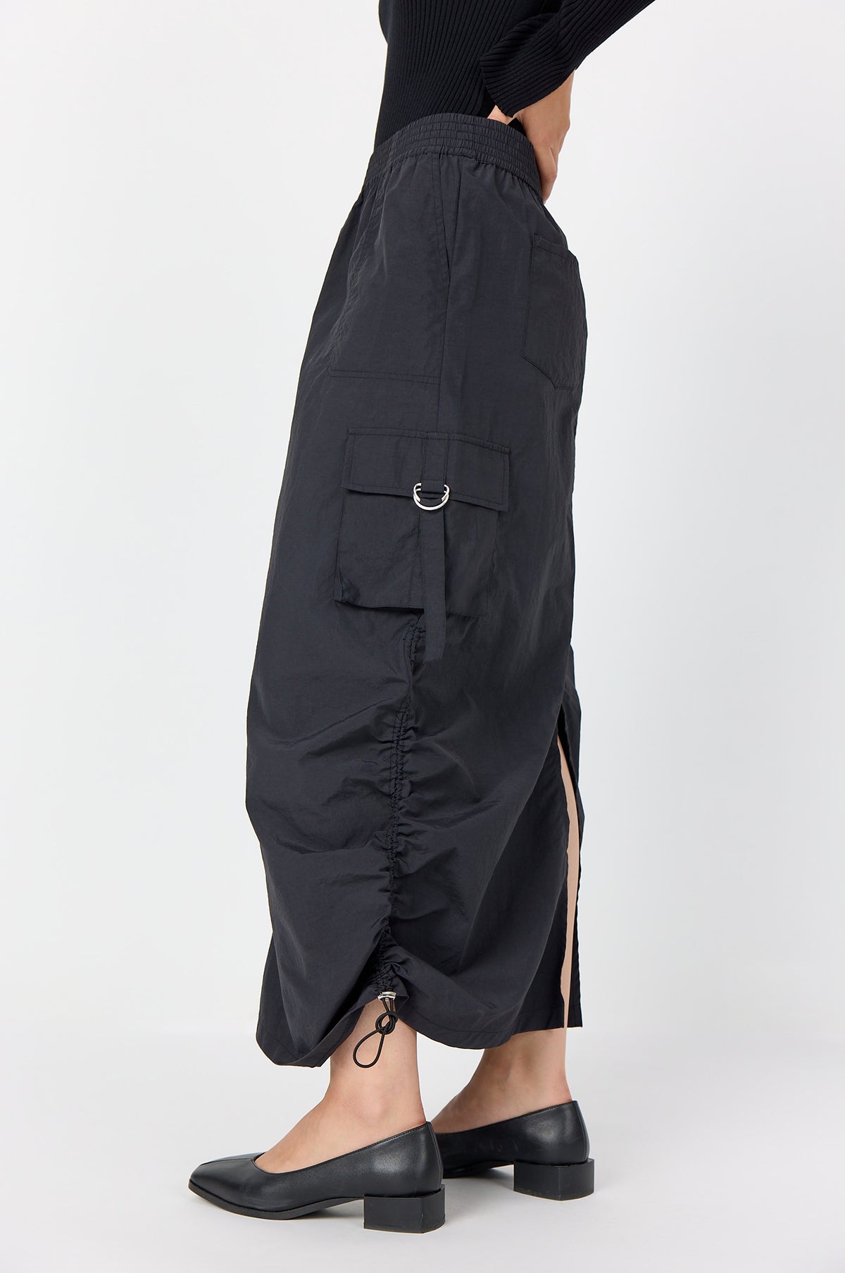 Achieve a sporty yet feminine look with this long cargo skirt. Designed with effortless style in mind, this skirt features side pockets with drawstrings, adjustable straps at the bottom of the skirt and an elasticated waistband. Easy to pair with a knitted jumper and chunky boots, this skirt will be a go-to addition in your wardrobe.