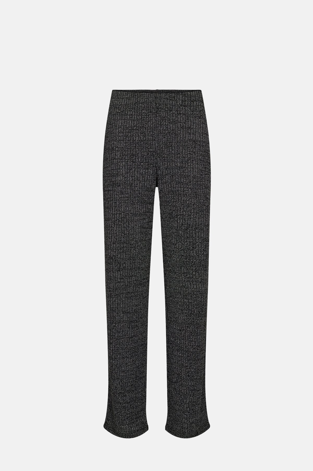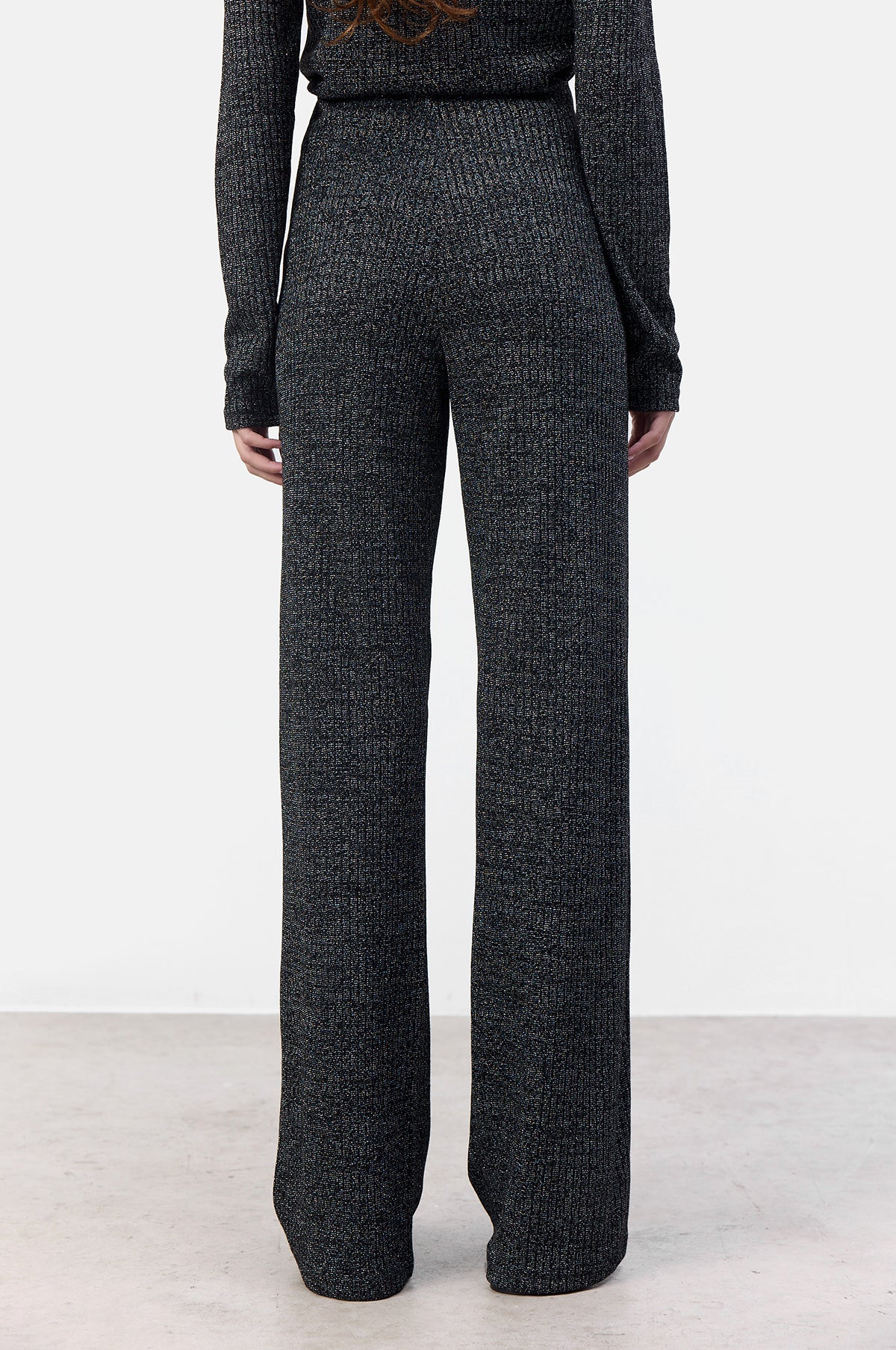 A comfy festive trouser. YES COMFORTABLE AND FESTIVE! This Christmas don't let too many mince pies and over eating pigs in blankets stop you from looking sparkly and brimming with festive joyfulness! These knitted, ribbed, black, elasticated waisted trousers have a loose flowy fit to them. Style them with their co-ordinated black Elma T-Shirt in the same fabric to bring the sparkle head to toe, or team with an oversized white shirt and some chunky boots.