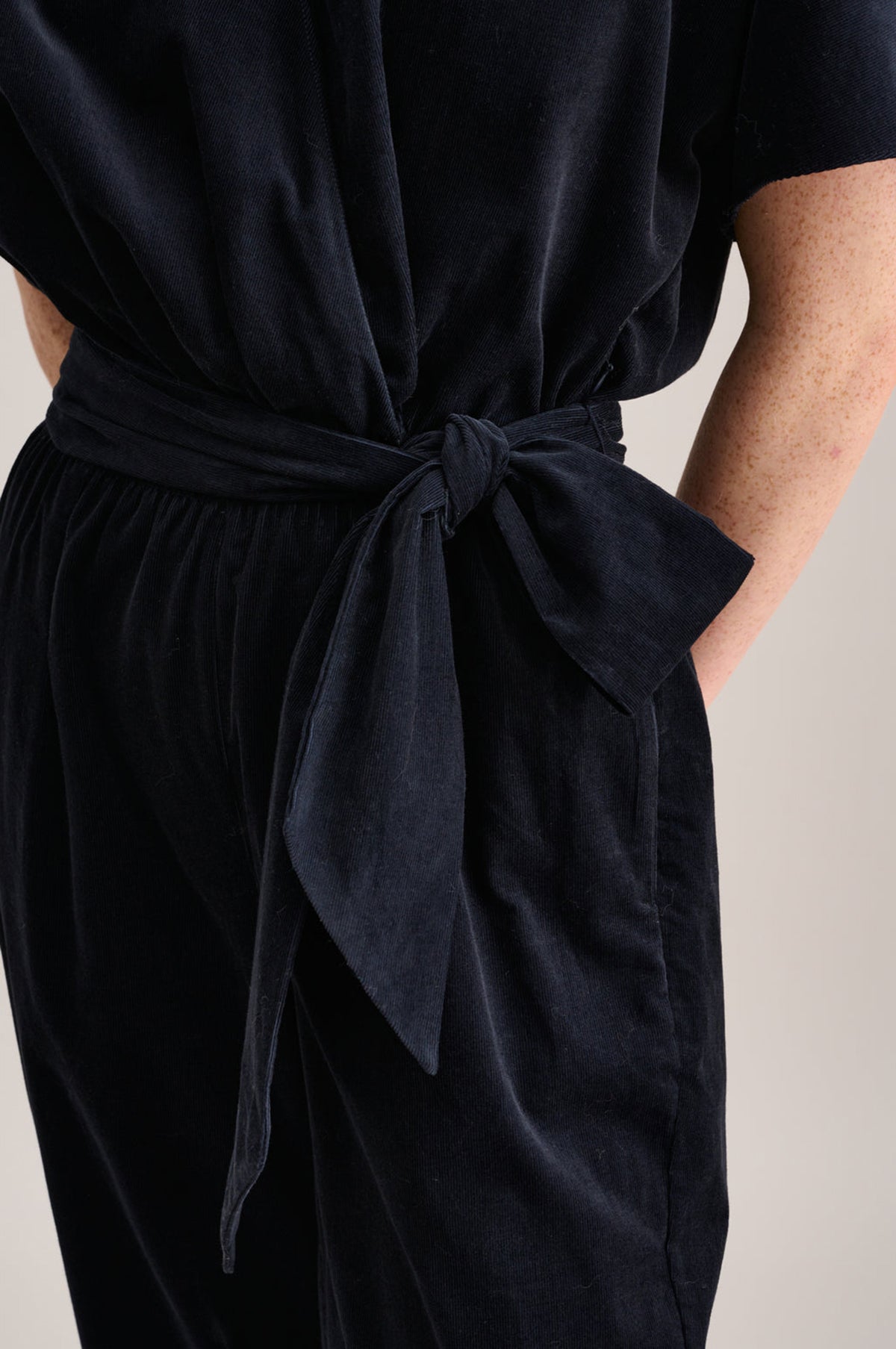 A jumpsuit that can go in any style direction is a reliable ally for days when you just don't know where to start. With a feminine cross heart shape, Honolulu is made from pure cotton baby cord. Wear it by day, layered over a second skin turtle neck, and finish the look with chunky sole ankle boots, or dress it up for eveningwear with gold jewelry and pointy toe flats.