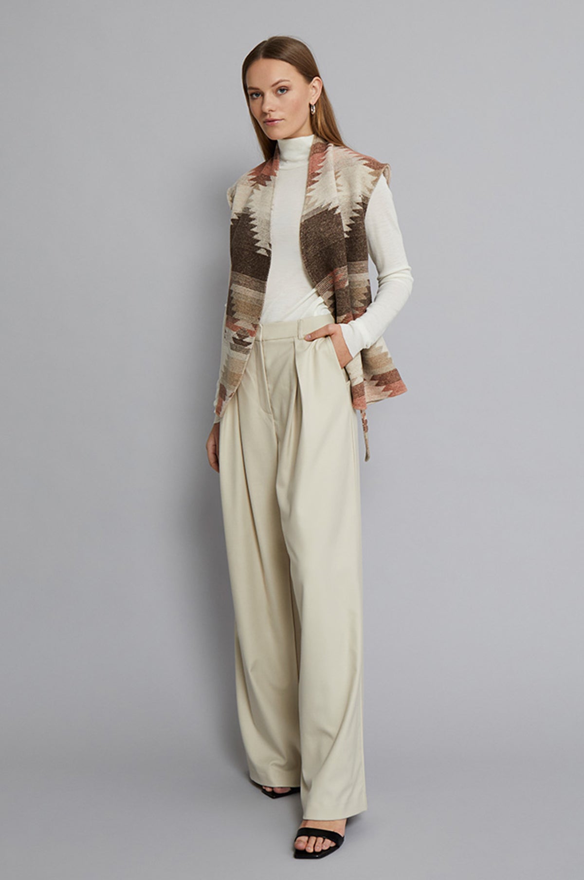 These beige high-waisted trousers from Minus are giving us Margot Robbie in a power suit vibes and we are totally here for it. This take on the classic suit pant feels insouciantly cool and can be styled in an infinite number of ways. Made from a medium weight polyester blend they feel soft and substantial and have a tailoured silhouette. We are pairing this with a sleeveless knit top and a tapis noir scarf on warmer days and with a tonal roll neck jumper and pointy ankle toe boots when it gets cold out.