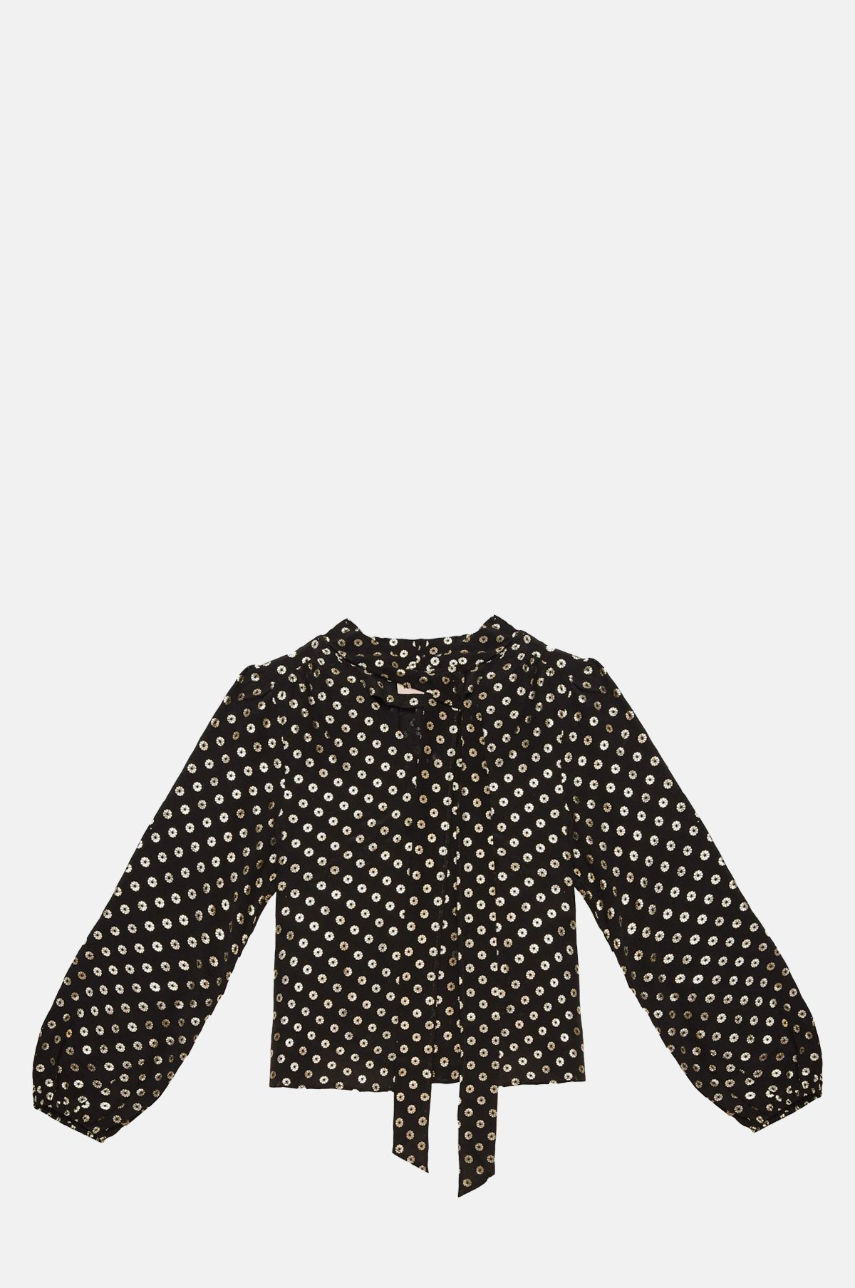 The Moss Top is a Rixo signature. Made from black silk crepe de chine with bohemian gold foil it feels cool and glamorous on. Lovely and floaty it is designed for tucking. Wear it your way, tucked into a printed slip skirt or loose with jeans.