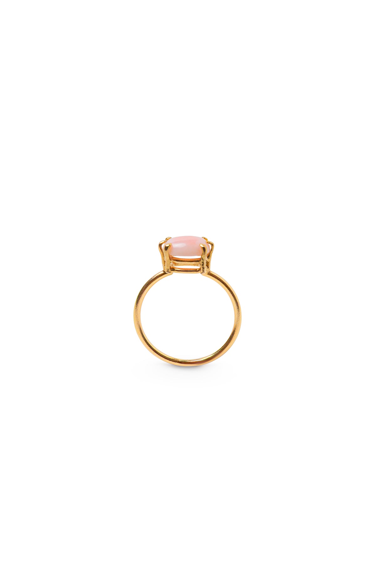 Delicately feminine, this Beatriz Palacios ring embraces understated beauty. Set on a thin gold-plated silver band, a small oval angel skin gem is held by three prongs at the rings centre. Adding a soft addition of coral colour to any outfit, it will sing by itself or lend itself for layering with other pieces to create a gorgeous ring stack.