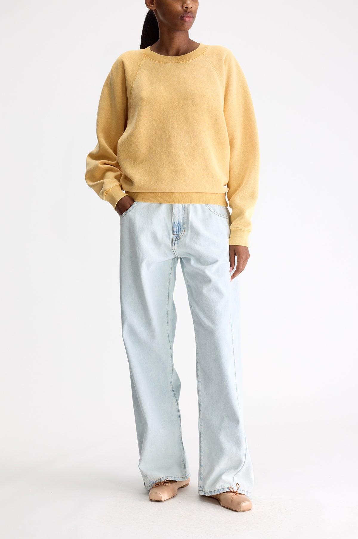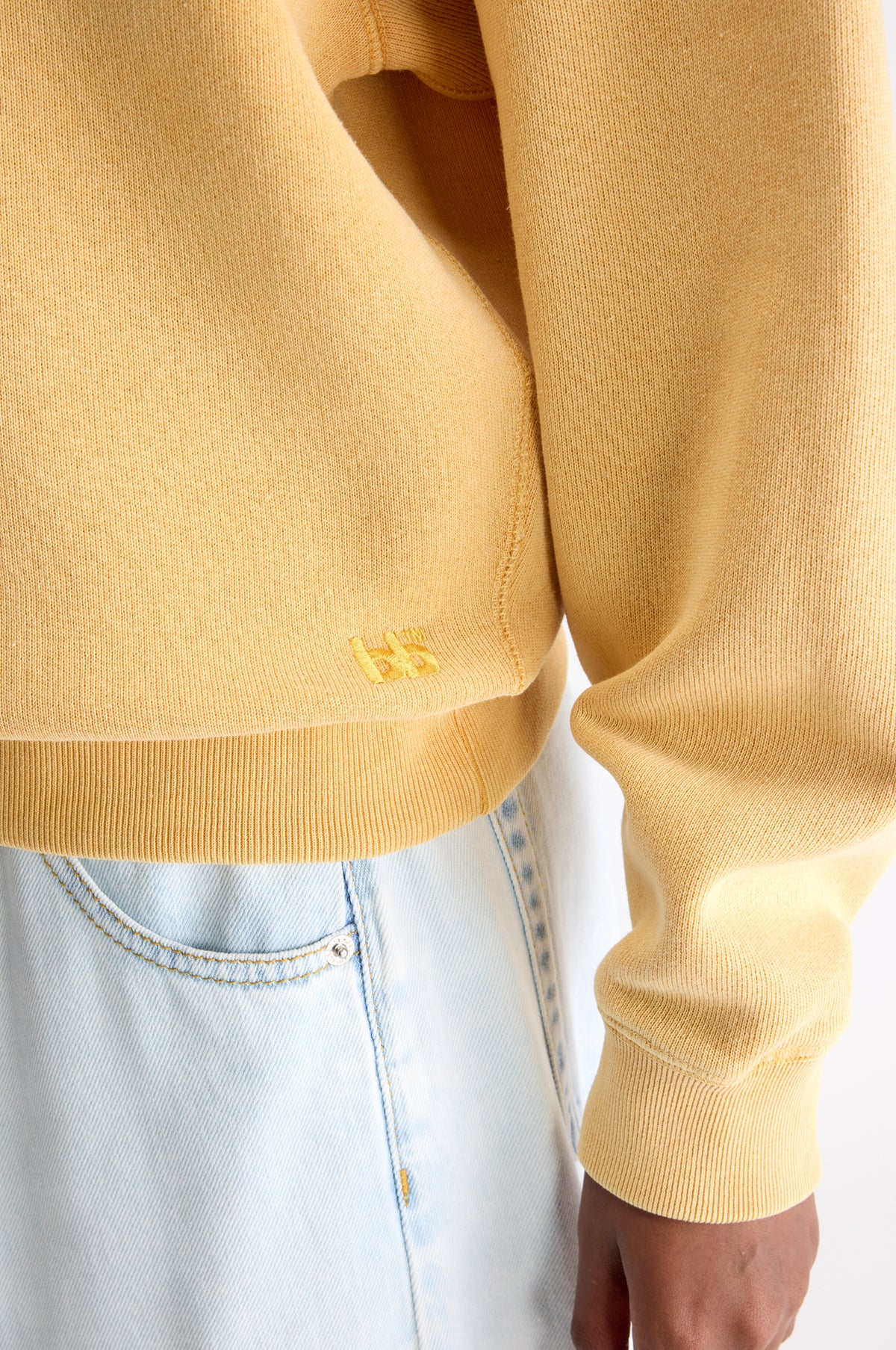 A relaxed soft mustard sweatshirt from Bellerose, this plush cosy sweatshirt has raglan sleeves and tone-on tone "bb embroidery" on the bottom left side. Made from a light fleece with a denim wash finish, it's the perfect piece for casual days spent running errands or cuddling up with a good book and a cup of tea by the fire.