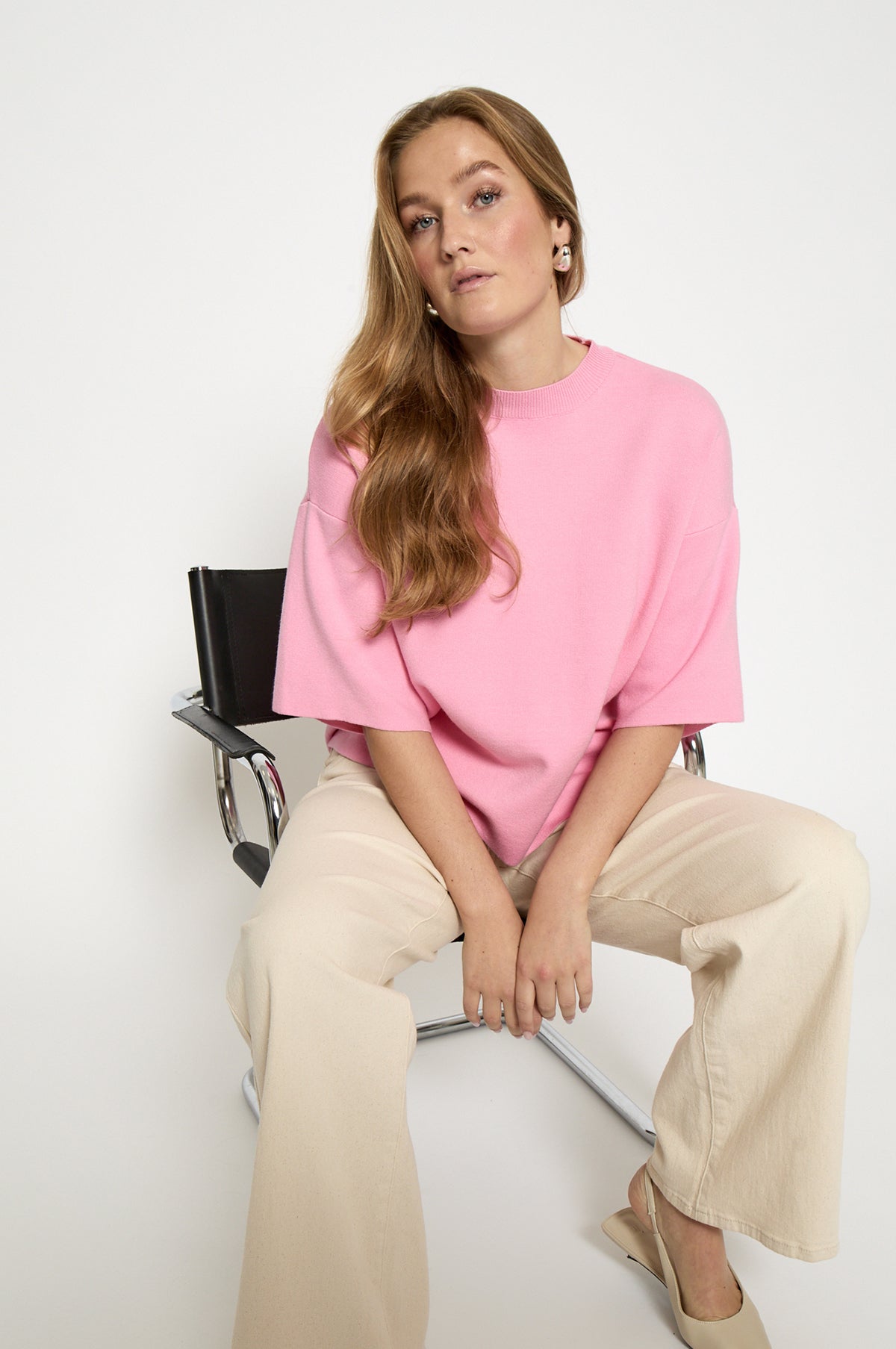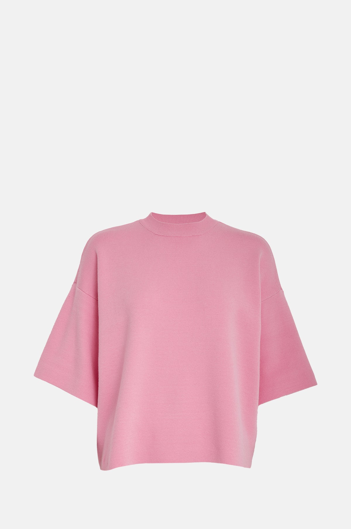 For something a touch more casual, the Lupi Knit bridges subtle elegance with Scandinavian simplicity. Cut from a knitted fabric blend with a pleasing weight, it has a relaxed shape designed with dropped shoulder seams, short and wide sleeves and a high round neck. Rendered in a punchy shade of pink, this t-shirt will be a hero for transitional dressing with a versatility that makes it easy to style.