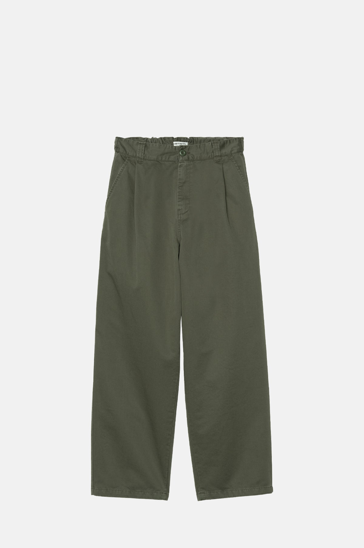 Taking cues from classic workwear while carrying a relaxed elegance, the Marv Pant is constructed from a midweight cotton twill. Rendered in a dark green with a pleasingly wash, the leg gently tapers towards the hem creating a soft silhouette. Practical details nod to the pants origins: bartack stitching, belt loops and slanted side pockets while front pleats and a part elasticated waistband provides a comfortable fit.