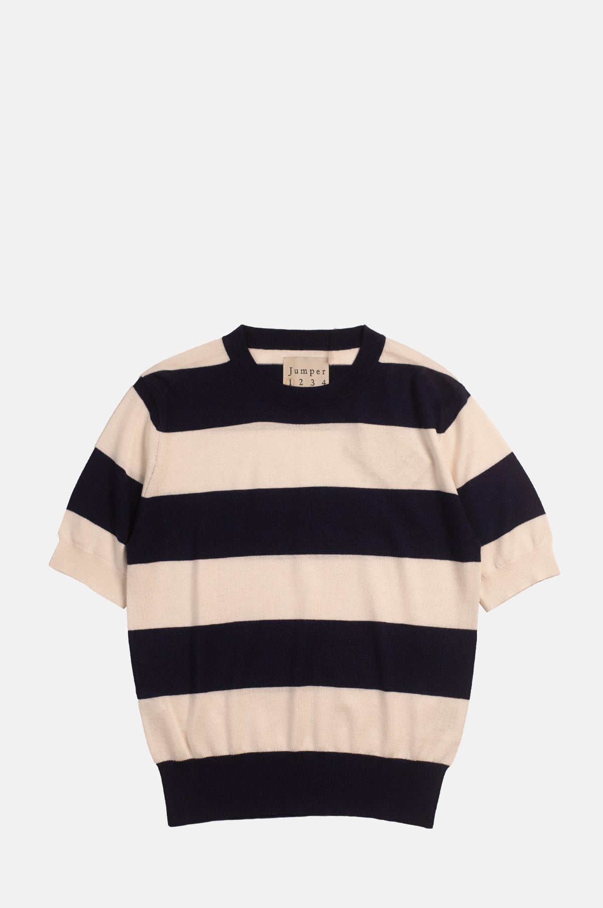 Knitted from the very best cashmere, the Slinky Stripe T-Shirt from Jumper 1234 is a perennial piece perfect for transitional dressing. Lightweight yet warm enough for the chillier days of spring, this t-shirt features a wide navy and chalky white stripe. Indulgent yet relaxed, this knit is equally at home paired with tailoring or denim on quieter days.