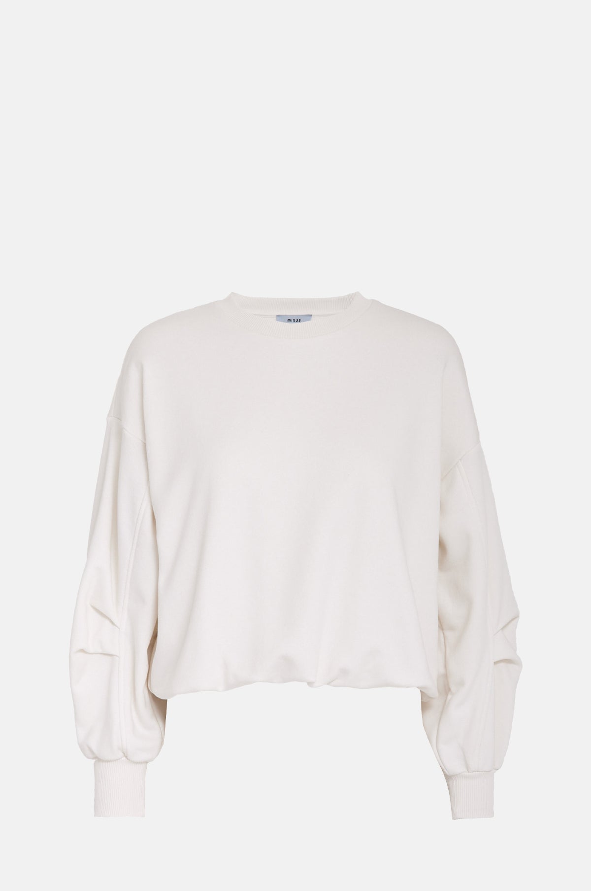 This cream crewneck sweater from Minus takes a modern twist on a classic shape. Gathered accents on the sleeves elevate the sweatshirt and add some visual interest while the dropped shoulders and elasticated waistband make this a comfortable choice for days where you seek the ease of a casual top but still want to feel stylish.