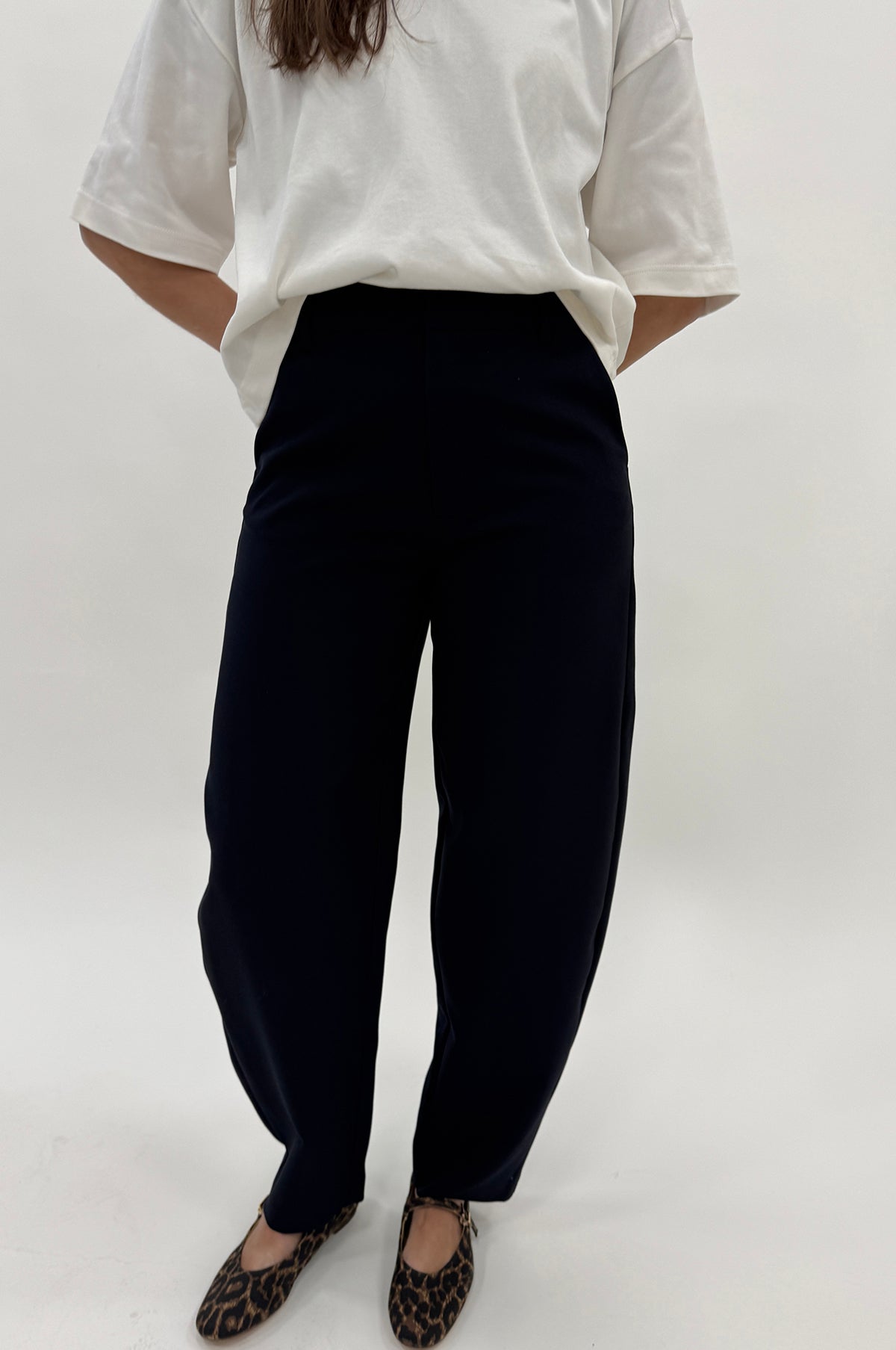 Falling beautifully into a sophisticated shape, the Tindra Pant offers an elevated version of the classic tailored trouser. High waisted with a regular fit, these navy trousers are softly structured into a gentle barrel shape which tapers in at the ankle. With an ability to pair well with almost any shirt, blouse or t-shirt, these trousers will be a steadfast companion season after season.