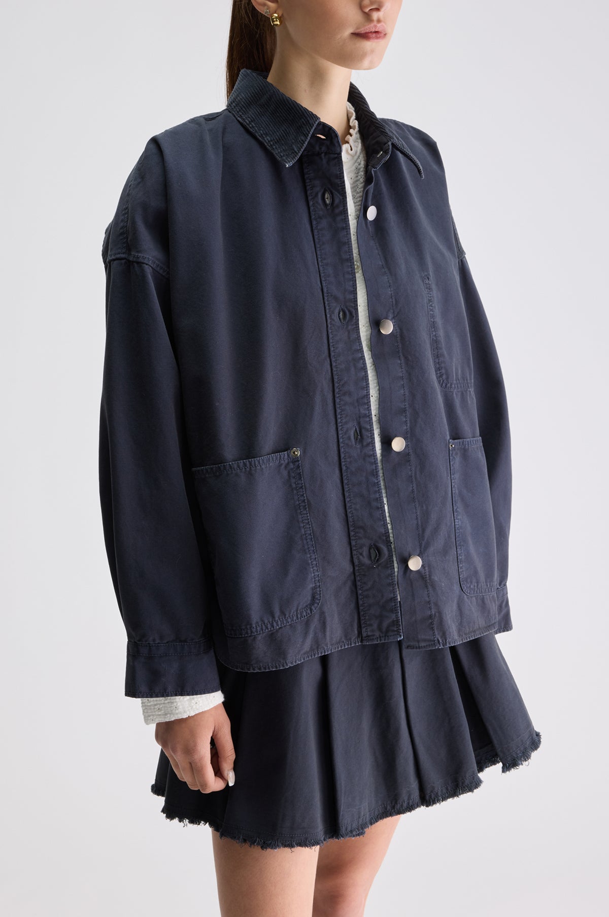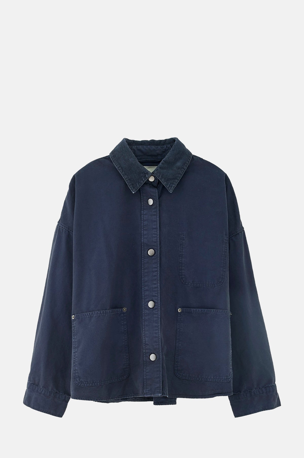 Offering enduring style, the Wandy Overshirt in navy takes inspiration from workwear to deliver a staple piece that has a relaxed elegance. Two patch pockets with rivets, a run of snap-buttons fastenings and tonal corduroy collar evoke the jacket's workwear inspirations while the back pleat and contemporary cut elevates the design. Layer as a jacket or style as a shirt - this is a truly versatile piece.