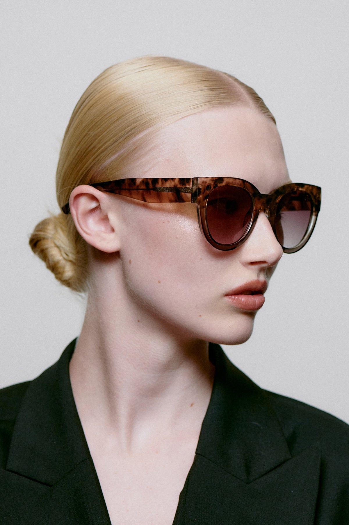 Lilly is the perfect retro diva in the A.Kjaerbede collection. A little sharper round the edges, combined with a big solid frame and round lenses, this style is perfect for all who love their sunglasses a little "extra". That said, they have timeless appeal and are suitable for anyone at any age. They have UV 400 protection, are made with scratch-resistant polycarbonate lenses and high quality optical hinges and come with a cleaning bag and presentation box.