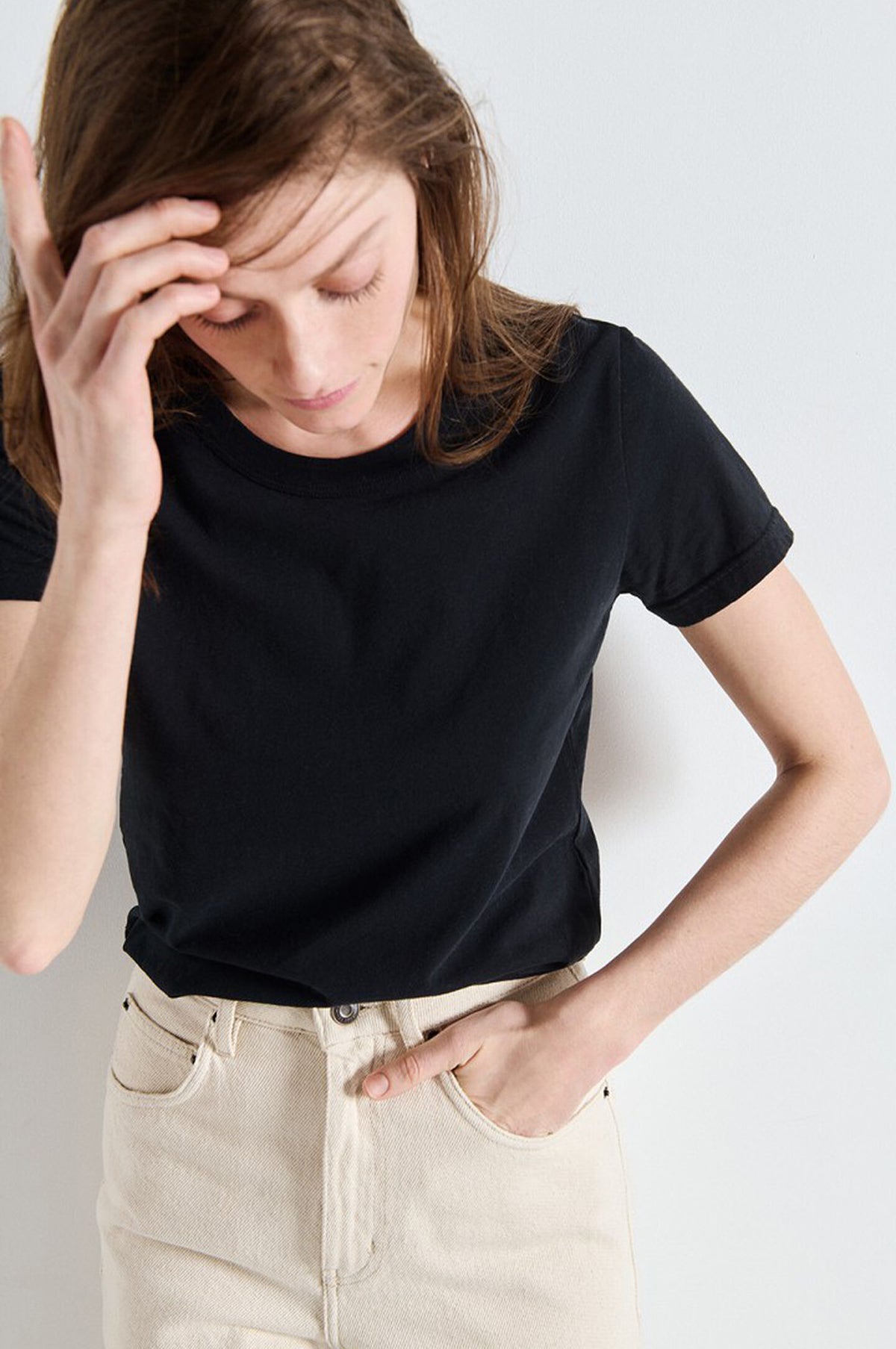 American Vintage has potentially done the impossible and made the perfect cropped t-shirt. Sure to become a beloved staple in your wardrobe, this ultra soft cotton tee has a crew neck, short sleeves, and a body skimming silhouette. This shirt comes in two colourways (black and white) and will make a versatile addition to any wardrobe.