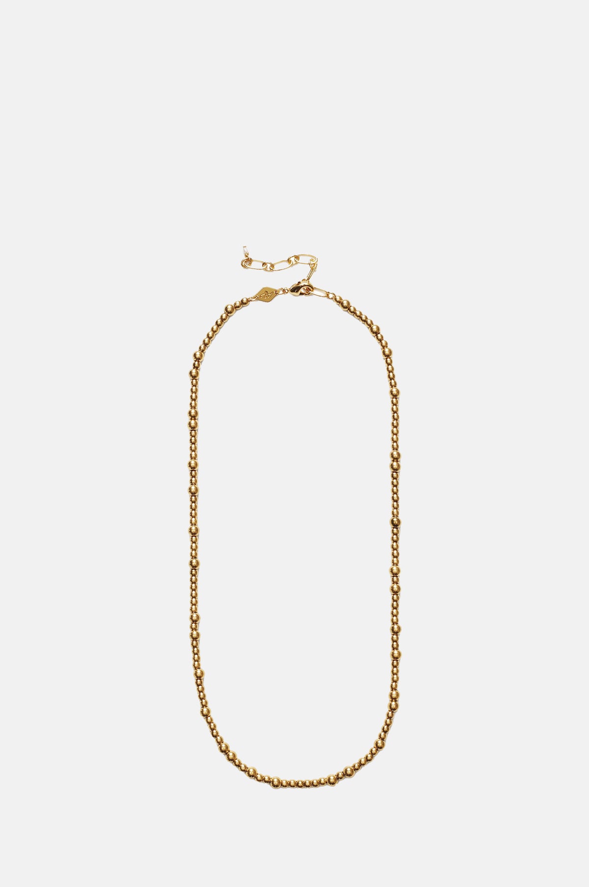 Introducing a new addition to the ever popular Anni Lu Goldie styles! The Slim Goldie styles embrace both elegance and playfullness at the same time. This necklace features gold beads in varying sizes that mimic the look of pearls, which gives it a natural unique look.