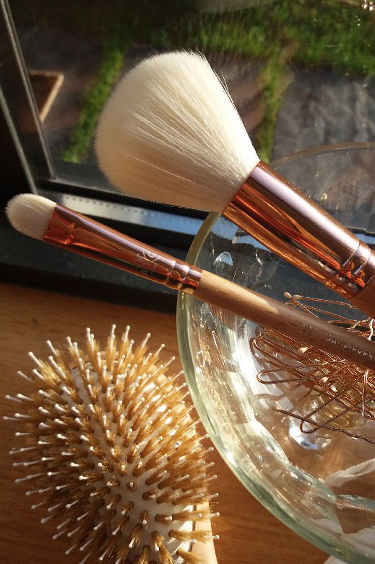 Wet the bristles in lukewarm water and place a drop of makeup brush