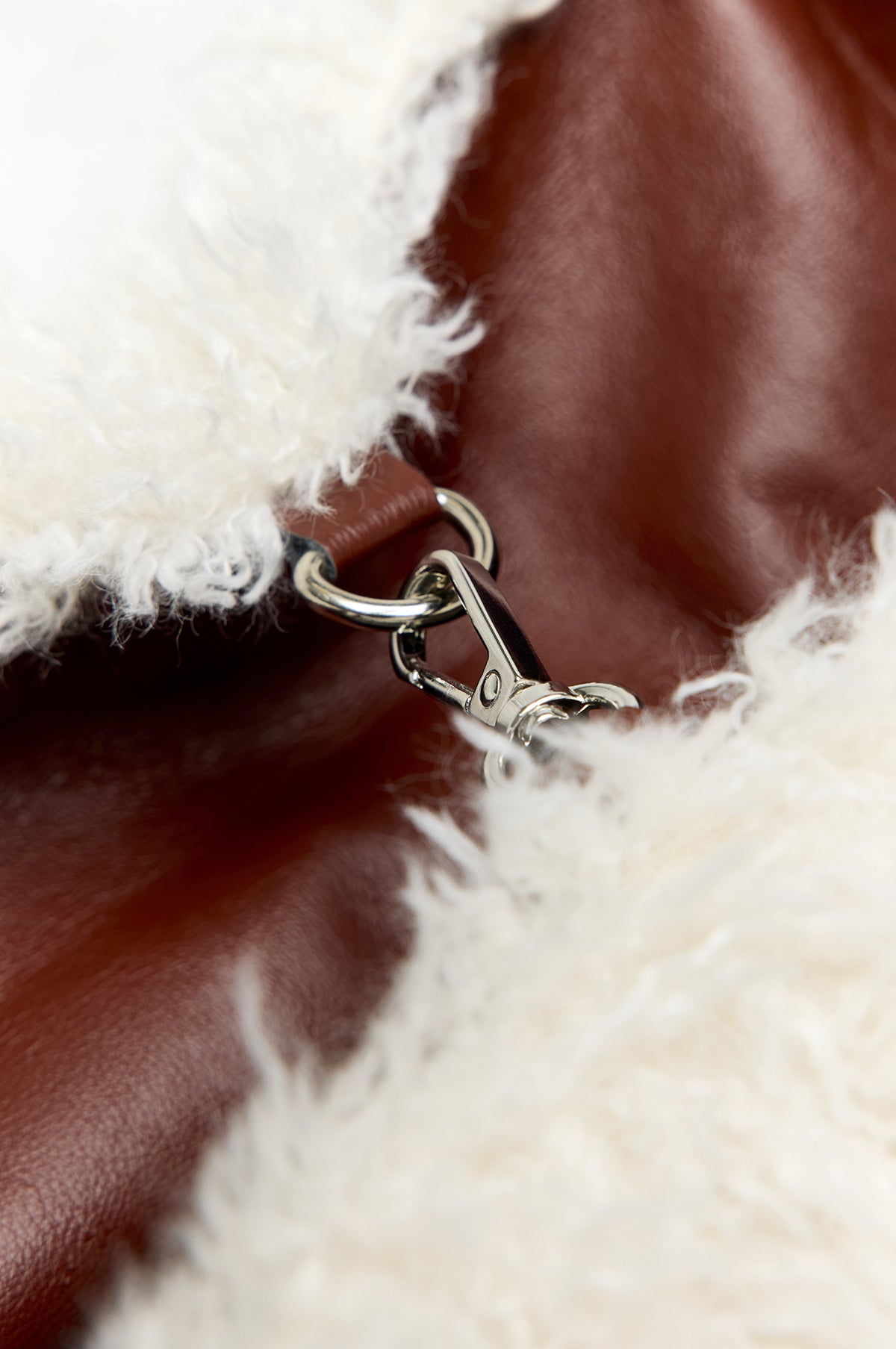 - Reversible shoulder bag: two-tone faux fur on one side and faux brown leather on the other