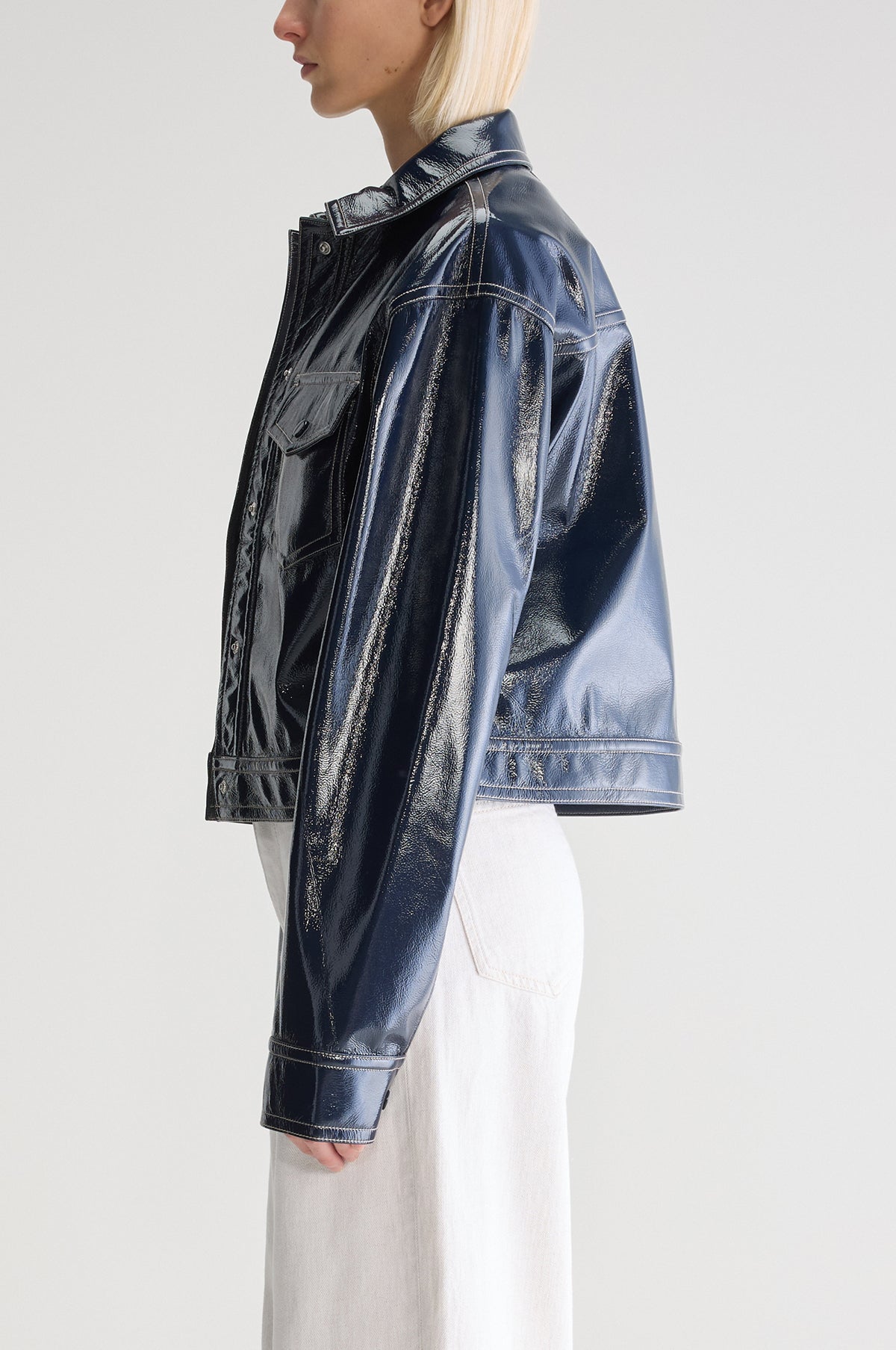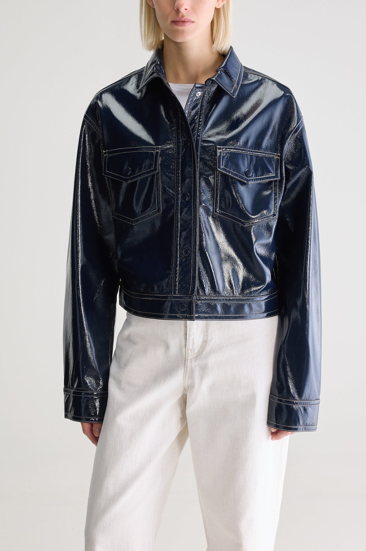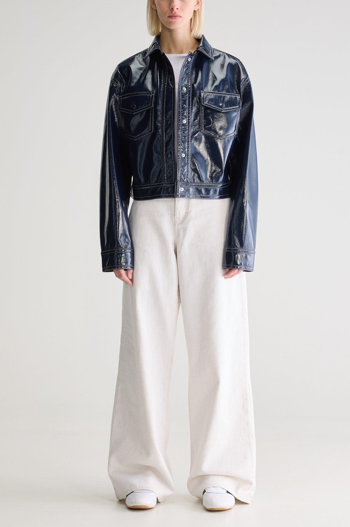 While there's considerably few fashion fashion items we'd like to preserve from the 80s, we can't deny the visual appeal of a patent leather jacket. With its high-gloss, lacquered finish - this faux patent-leather jacket from Bellerose will bring more drama to your outfit than the Queen Vic fire in EastEnders. With its subtle nod to Courrèges’ biker jacket from their Spring/Summer'23 collection, we love the cool versatility of this shiny navy topper. Timelessly designed with contrast white stitching and popper buttons and hitting at a flattering point just below the hips - the styling options are endless.
