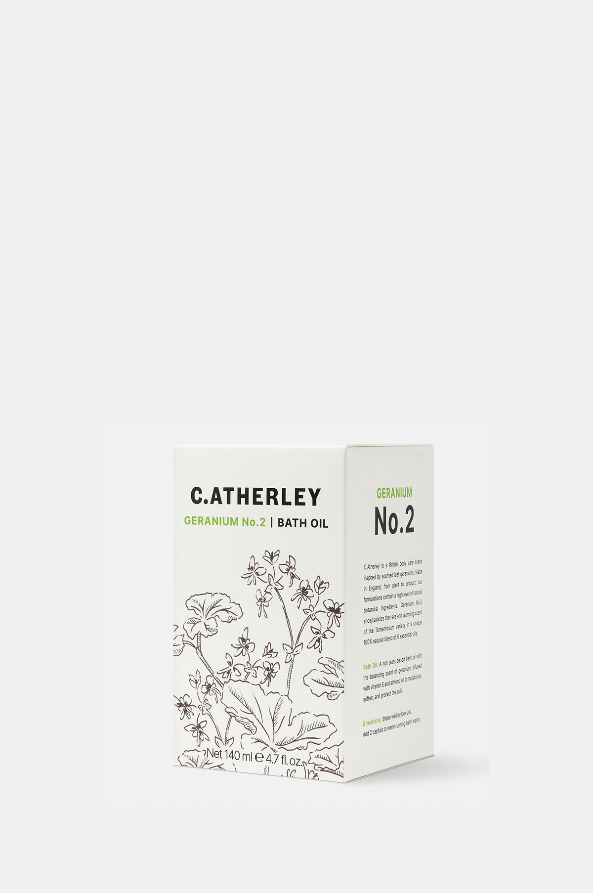 C.Atherley expertly capture the magic and soothing fragrance of scented leaf geraniums. From plant to product, these bespoke formulations of natural botanical ingredients have been developed, created and bottled in the English countryside. Scent Geranium No.2 encapsulates the rare and clarifying scent of the Tomentosumin variety in a unique 100% natural blend of six essential oils Geranium, Peppermint, Cedarwood, Clove Bud, Coriander and Black Pepper with uplifting, clarifying and balancing properties.