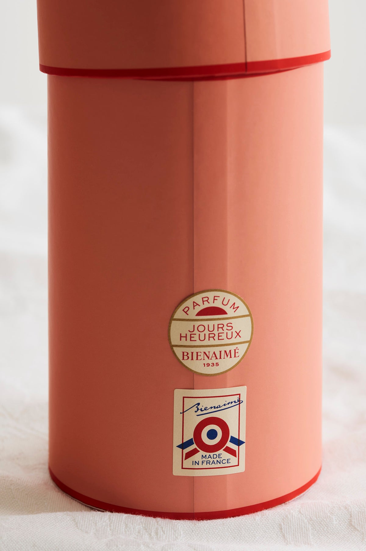 Tender and comforting, this olfactory caress envelops you in irresistible softness. The very essence of jours heureux, a powdery floriental to be worn like a soft knit.